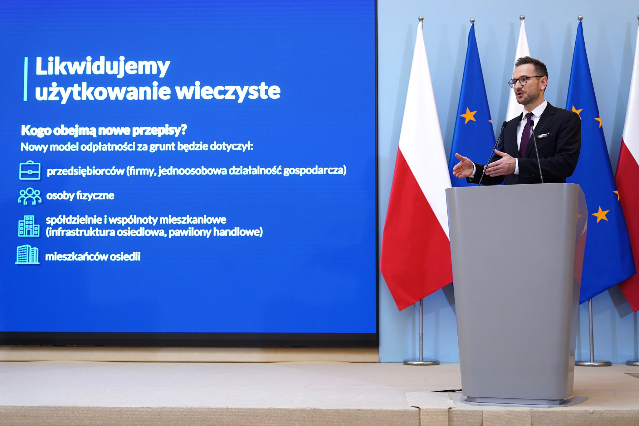 W Polsce jest ponad 400 tys. nieruchomości znajdujących się w użytkowaniu wieczystym. Ustawa jest kolejnym etapem eliminacji użytkowania wieczystego z systemu prawa. W ten sposób umożliwimy przedsiębiorcom, ale też osobom fizycznym, spółdzielniom i wspólnotom mieszkaniowym uzyskanie na własność gruntów, które mają od wielu lat w użytkowaniu wieczystym. Wyeliminuje to obciążenia finansowe wynikające z obowiązku ponoszenia co roku opłat rocznych za użytkowanie wieczyste oraz niepewność wynikającą z terminowego charakteru tego prawa