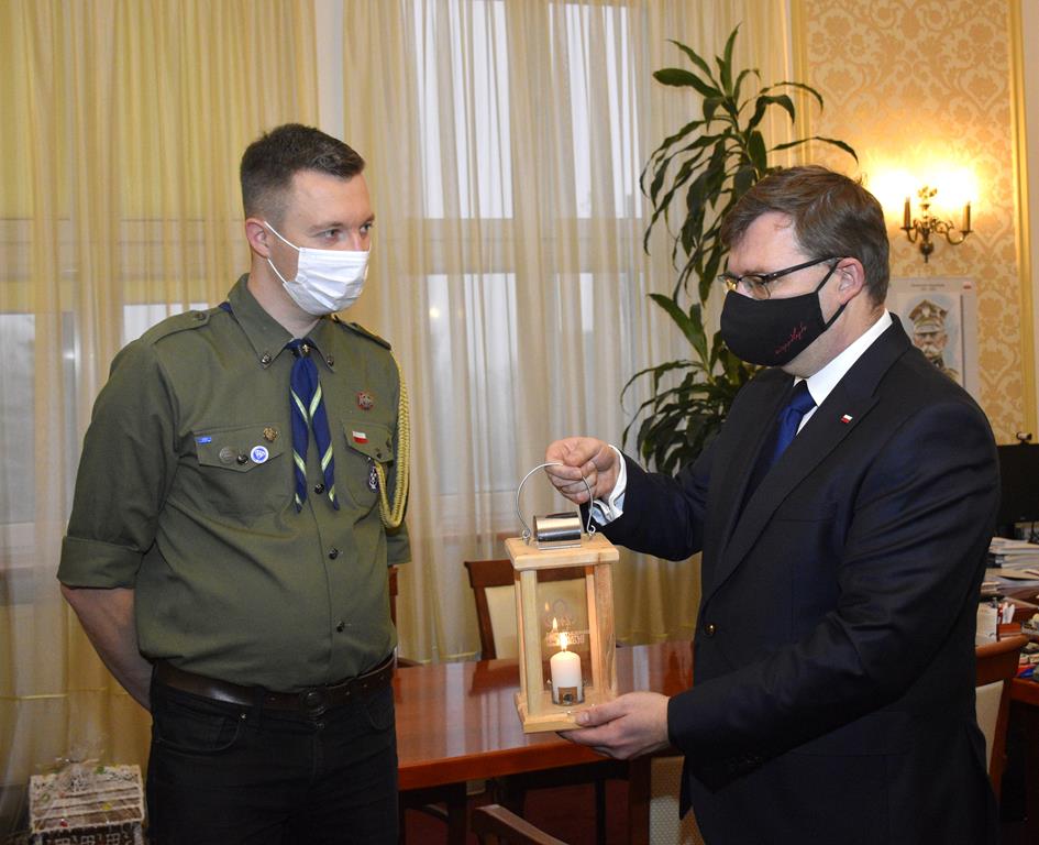 Harcerze z ZHP przekazali Wojewodzie Betlejemskie Światło Pokoju