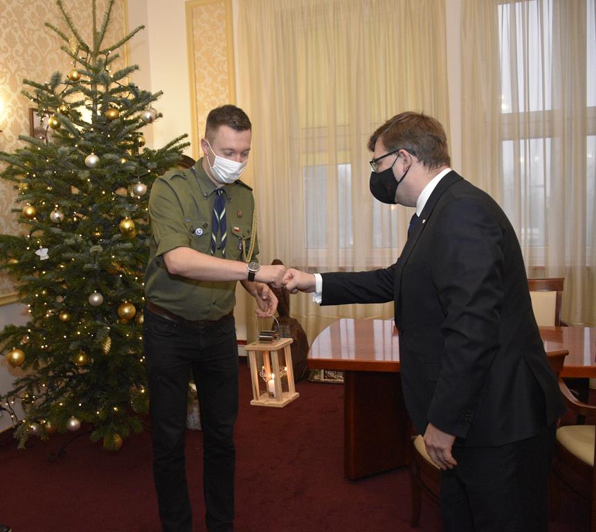 W piątek 18 grudnia, wojewoda warmińsko-mazurski Artur Chojecki gościł harcerzy z warmińsko-mazurskiej chorągwi ZHP, którzy przekazali na jego ręce Betlejemskie Światło Pokoju, symbol pokoju, nadziei i miłości.