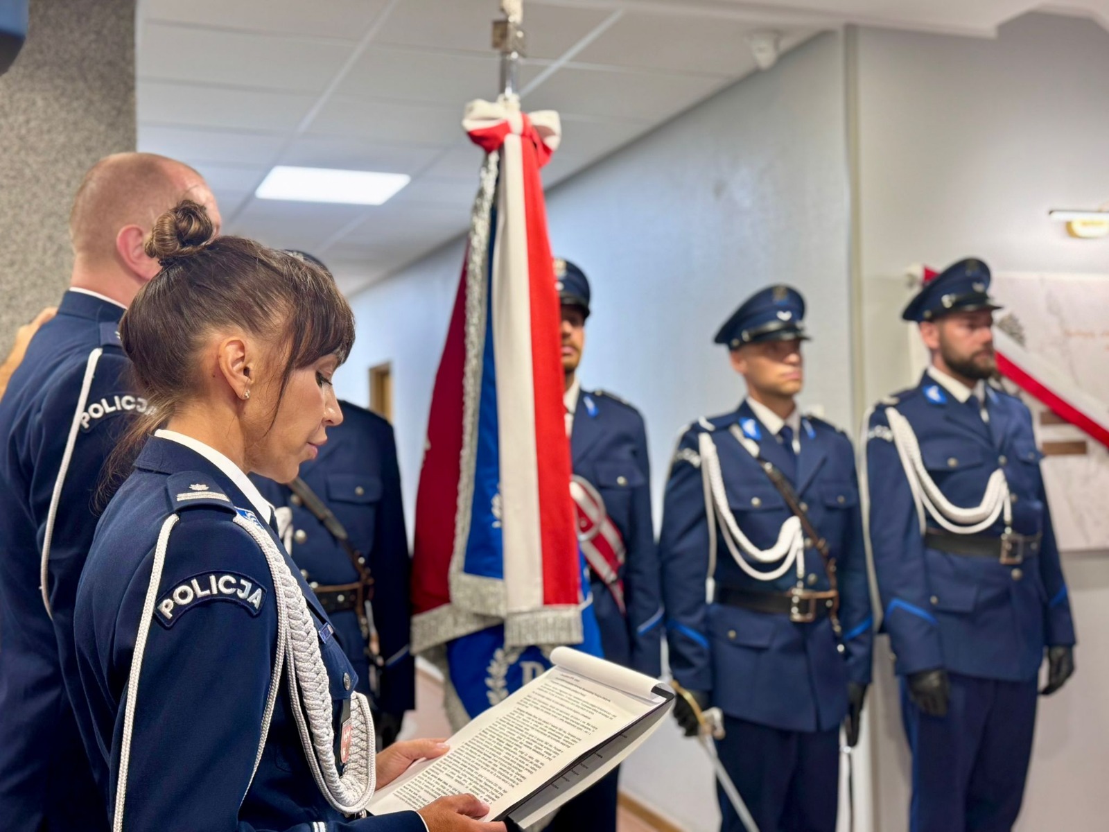 W holu głównym Komendy Wojewódzkiej Policji w Olsztynie odbyła się uroczystość odsłonięcia tablicy upamiętniającej siedmiu funkcjonariuszy, którzy zginęli na służbie, pełniąc misję ochrony życia, zdrowia i bezpieczeństwa obywateli.