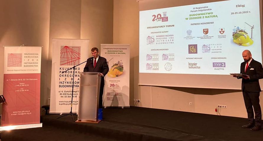 Dziś w Elblągu otwarto III Regionalne Forum Inżynierskie pod hasłem „Budownictwo w zgodzie z naturą”. Główne tematy to ekologia i energetyka, tak bardzo ważne aspekty dla całego kraju. Forum jest okazją, by wymieniać się poglądami na aktualne tematy i poruszyć problemy polskiego budownictwa, wypracować wspólne stanowisko w sprawach ważnych dla środowiska inżynierów budownictwa. Jest to doskonała okazja do konsolidacji środowiska inżynierów budownictwa, do zacieśnienia współpracy z organami nadzoru budowlanego oraz pomiędzy izbami samorządu zawodowego na szczeblu okręgowym.