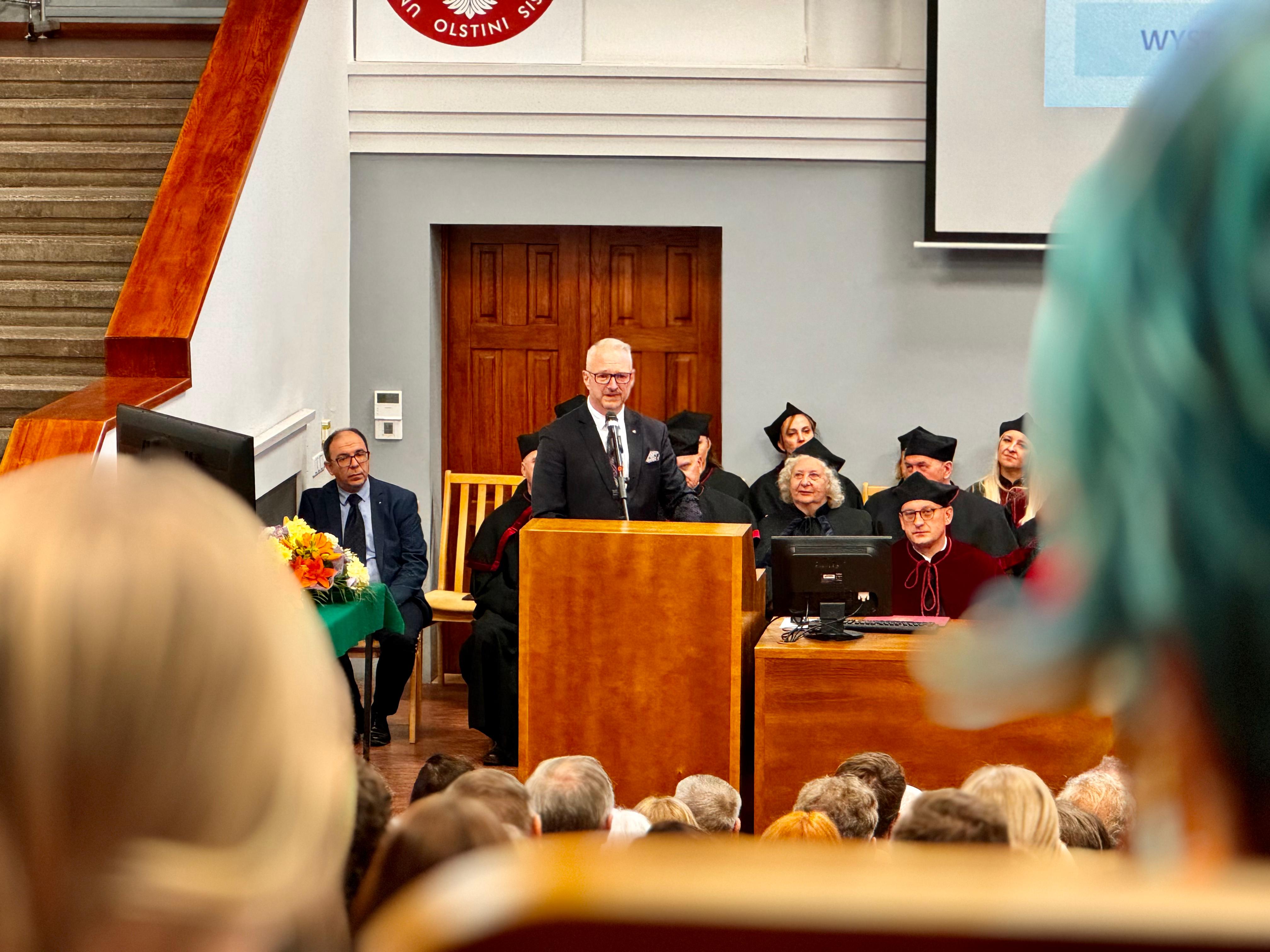W auli im. prof. Mariana Gotowca, 3 października br. odbyła się uroczysta inauguracja roku akademickiego 2024/2025. W wydarzeniu uczestniczył Wojewoda Warmińsko-Mazurski Radosław Król. Wojewoda jest absolwentem kierunku rybactwo, a podczas uroczystości wręczał gratulacje w im. Polskiego Towarzystwa Rybackiego.