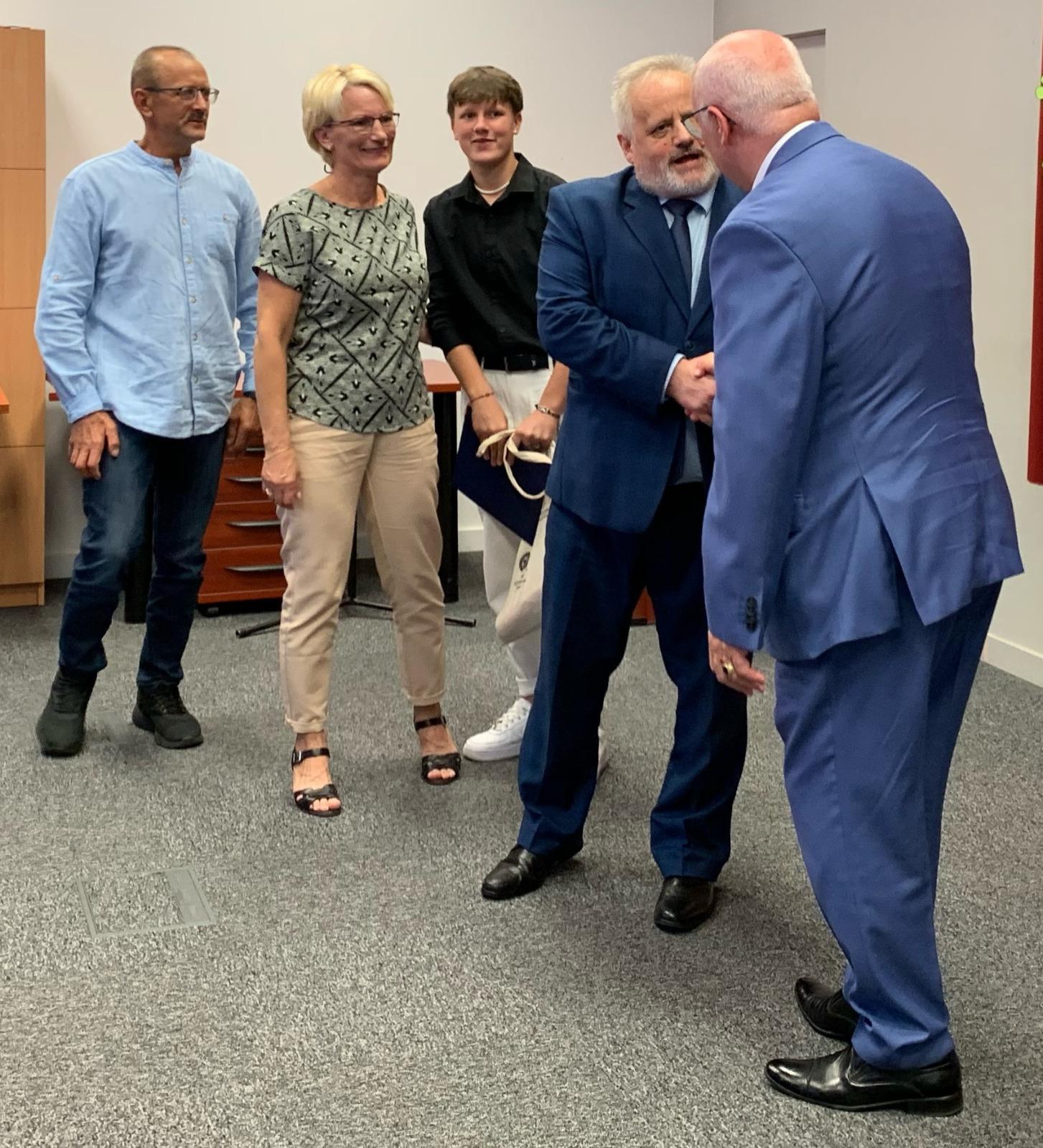 Wicewojewoda, korzystając z okazji, wręczył specjalny list gratulacyjny od Wojewody Warmińsko-Mazurskiego Radosława Króla dla Agaty Pankiewicz, uczennicy Liceum PATOS.