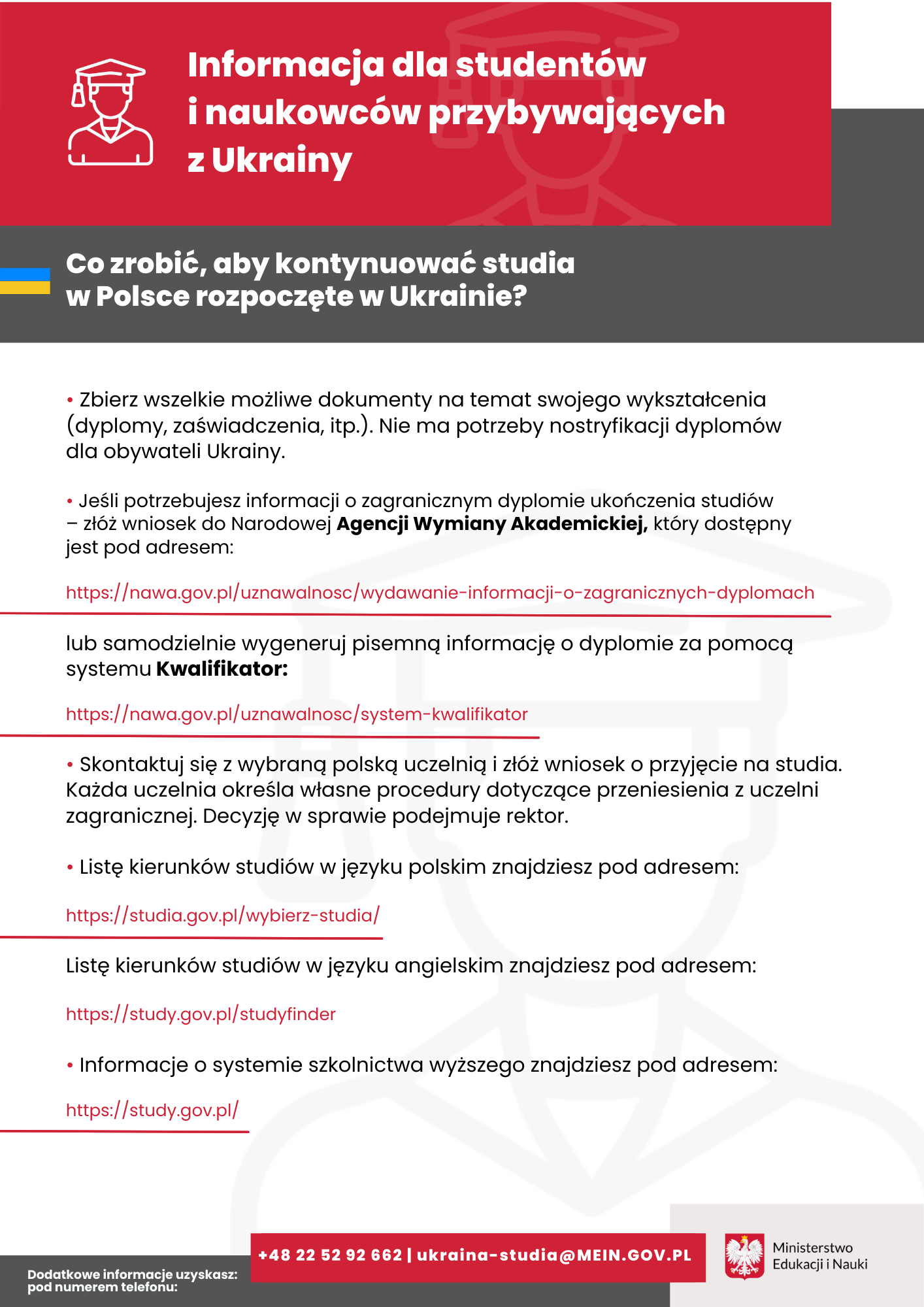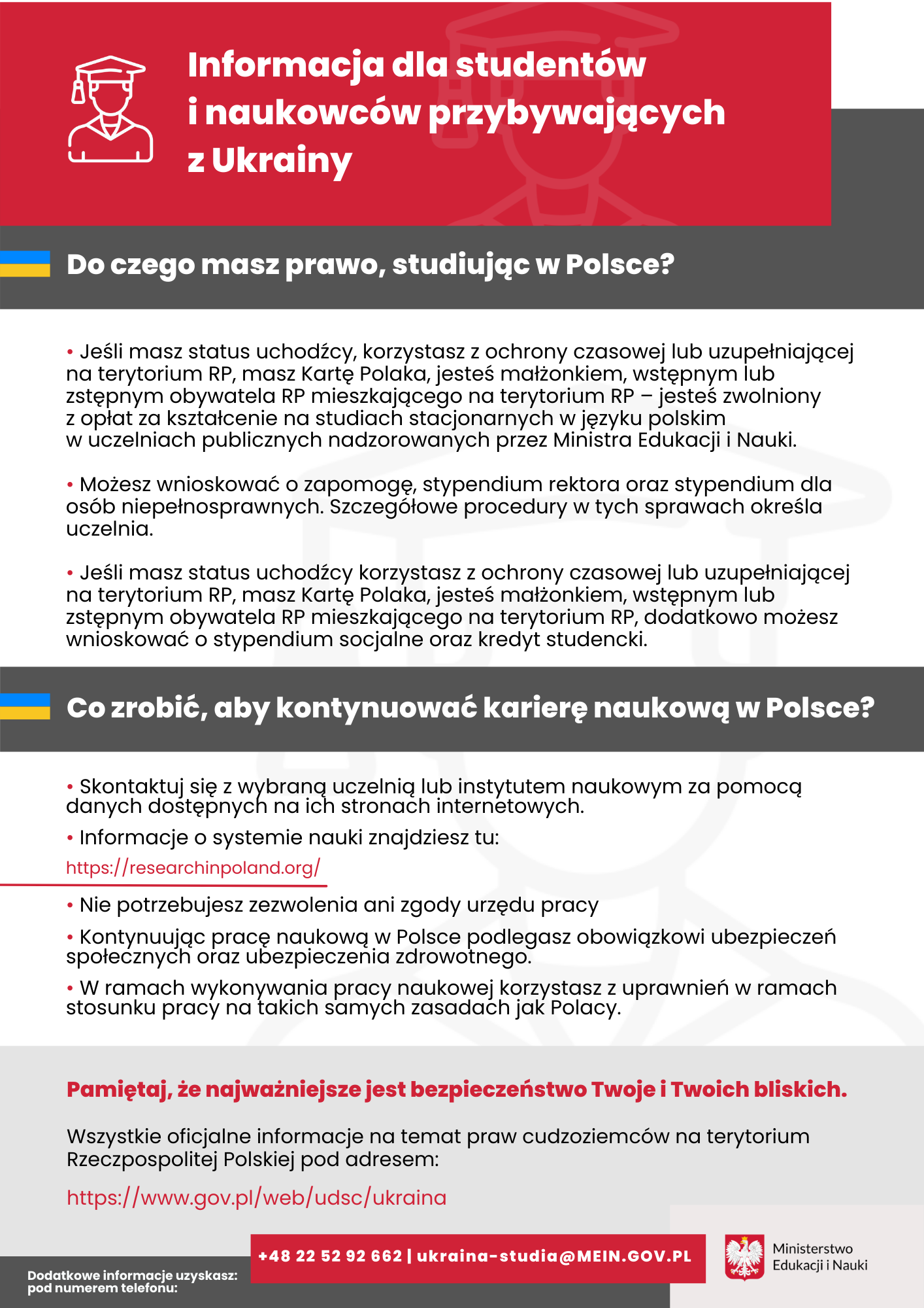 Informacja dla studentów i naukowców przybywających z Ukrainy / ІНФОРМАЦІЯ ДЛЯ СТУДЕНТІВ І ВЧЕНИХ, ЯКІ ПРИЇЖДЖАЮТЬ З УКРАЇНИ