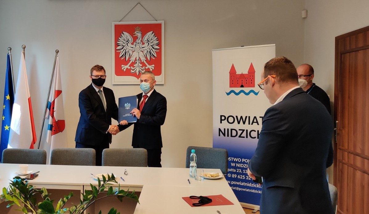 Dziś w Starostwie Powiatowym w Nidzicy Wojewoda Artur Chojecki podpisał kolejne 24 umowy z samorządami powiatu nidzickiego, szczycieńskiego i ostródzkiego na dofinansowanie zadań mających na celu poprawę bezpieczeństwa ruchu pieszych w obszarze oddziaływania przejść dla pieszych w ramach Rządowego Funduszu Rozwoju Dróg.