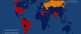 Mapa przedstawia 27 państw (kolor czerwony), które są objęte zakazem lotu zgodnie z rozporządzeniem oraz destynacje, które wg stanu na 12 października br. zawierają współczynnik powyżej 90 (kolor pomarańczowy) – bez państw UE i EOG, strefy Schengen, Ukrainy i krajów, które notyfikowały Polsce wprowadzenie rozwiązań zapewniających, że na pokład samolotów nie zostaną wpuszczone osoby zakażone Covid-19. Przy utrzymującej się wzrostowej tendencji zachorowalności, niewykluczone, że wykaz zostanie rozszerzony o ww. państwa/terytoria.
