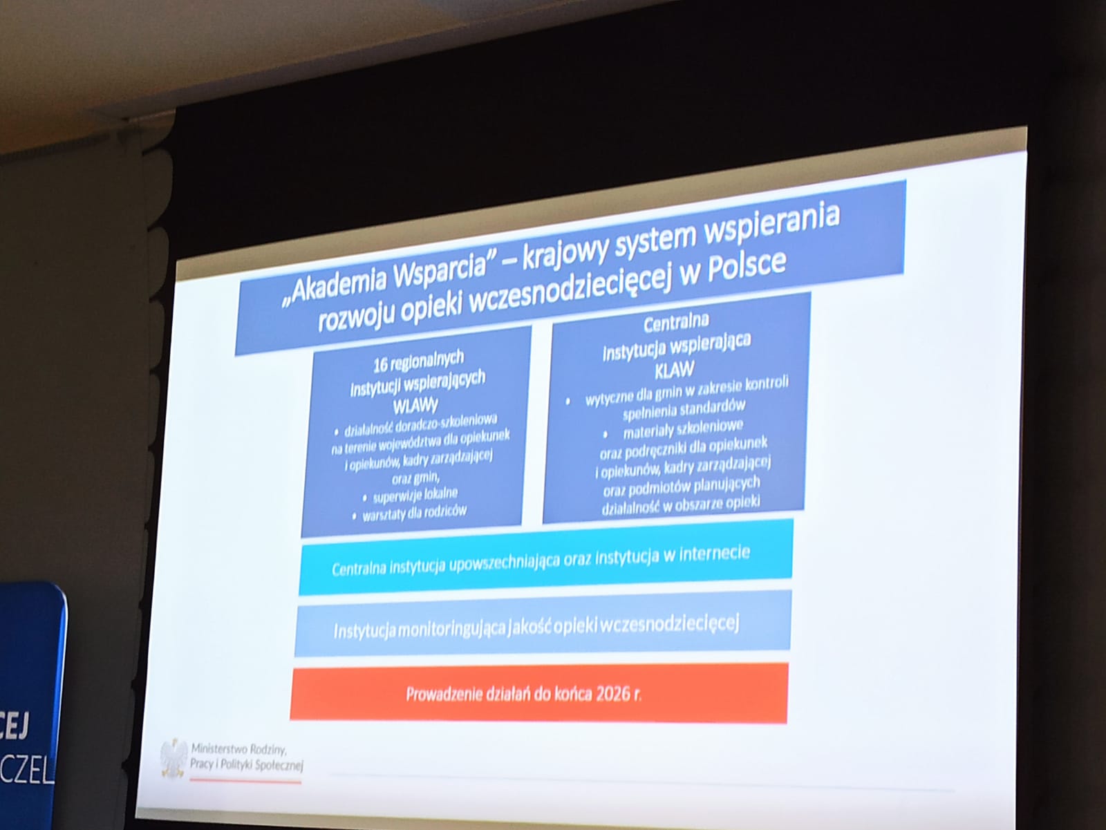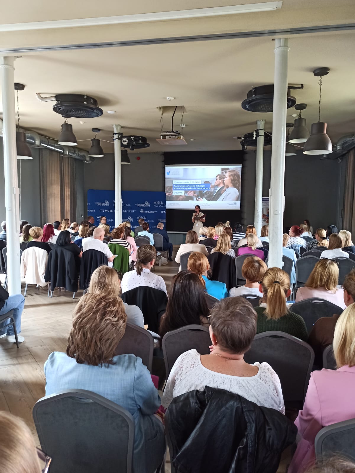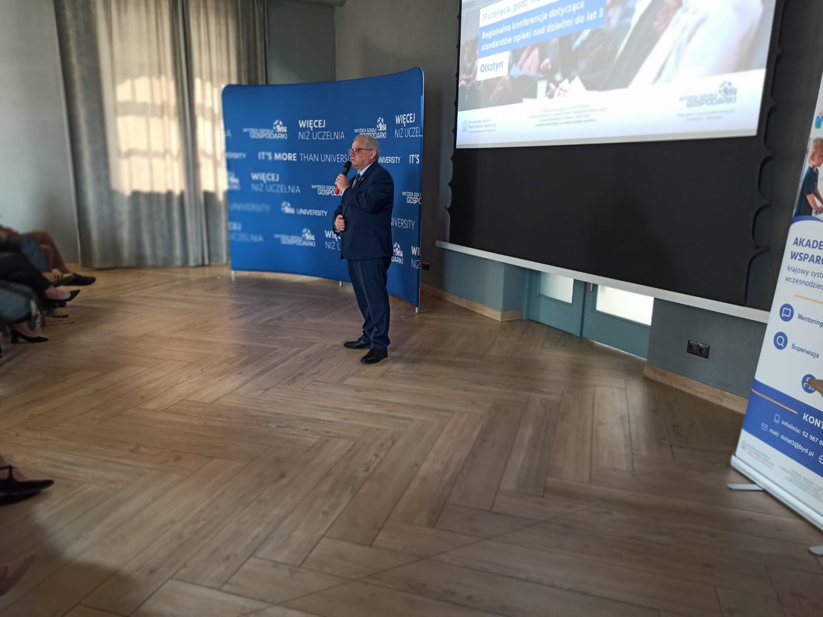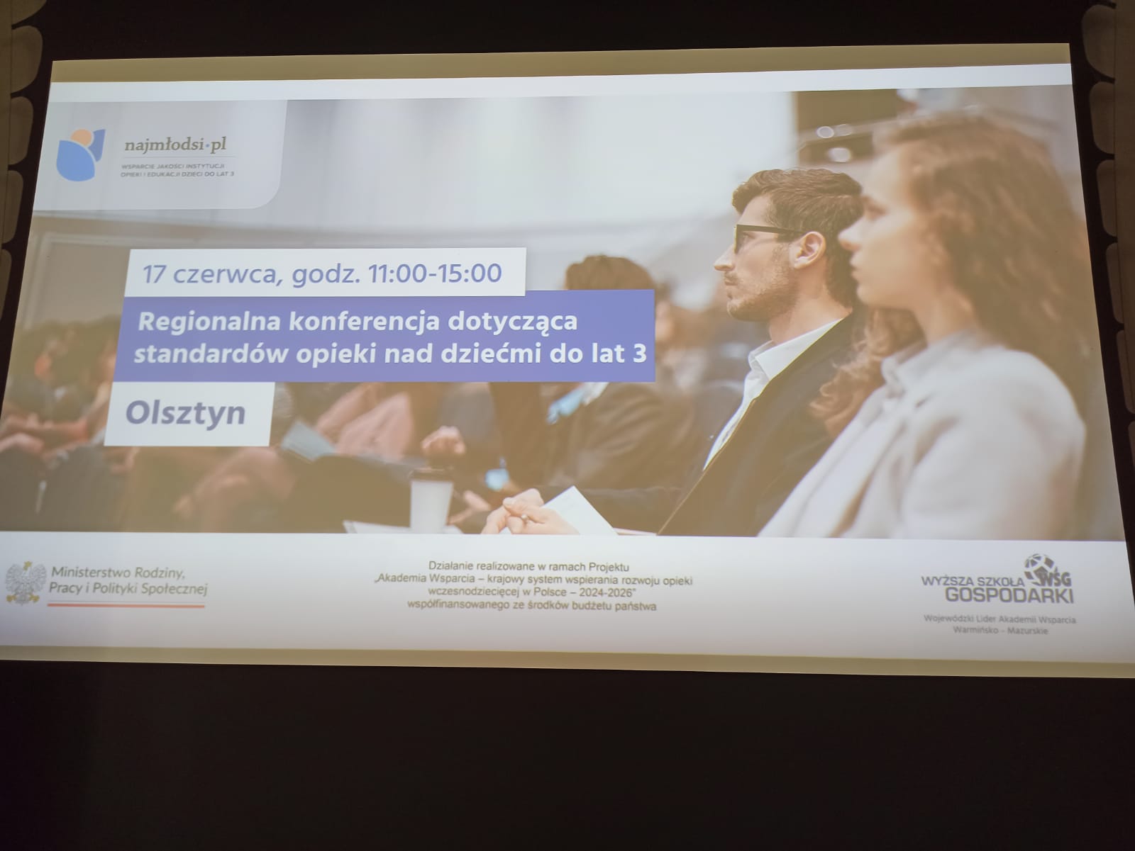 17 czerwca 2025 r. w Kuźni Społecznej w Olsztynie odbyła się regionalna konferencja projektu „Akademia Wsparcia - krajowy system wspierania rozwoju opieki wczesnodziecięcej w Polsce 2024-2026”, zorganizowana przez Wyższą Szkołę Gospodarki w Bydgoszczy oraz Ministerstwo Rodziny, Pracy i Polityki Społecznej. W wydarzeniu uczestniczyli Wicewojewoda Warmińsko-Mazurski Zbigniew Szczypiński, Dyrektor Wydziału Polityki Społecznej W-M UW Adrian Żemis, oraz Z-ca Kierownika Wydziału Polityki Społecznej W-M UW Anna Koroś-Czubak.