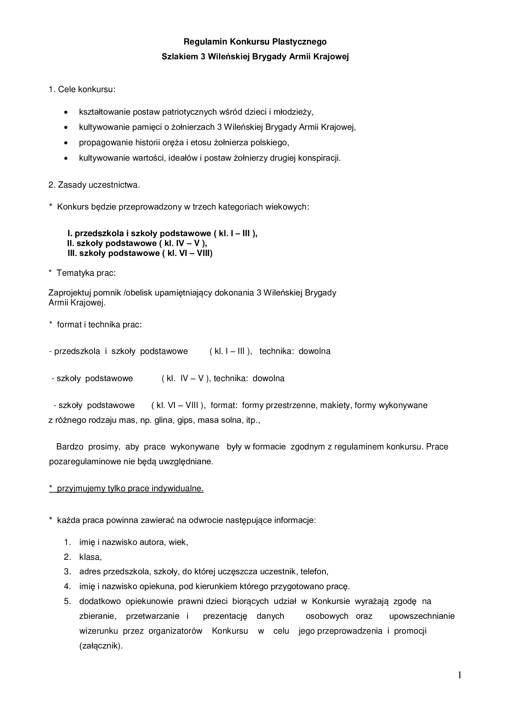 Zaprojektuj pomnik /obelisk upamiętniający działalność 3 Wileńskiej Brygady Armii Krajowej wyślij w postaci skanu lub zdjęcia na adres 4w-mbot@o2.pl do dn. 30.04.2021r. Oryginał pracy należy wysłać na adres 4 Warmińsko-Mazurskiej Brygady Obrony Terytorialnej , ul. Saperska 1, 10-073 Olsztyn do 30.04.2021r. Najlepsze prace zostaną opublikowane na naszej stronie - powstanie z nich wyjątkowy album.