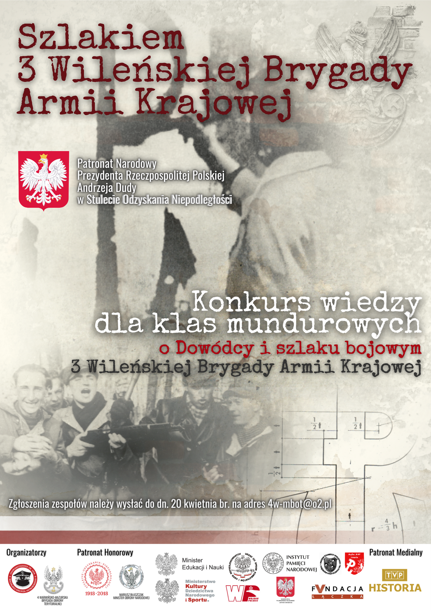 Konkurs "Szlakiem 3 Wileńskiej Brygady Armii Krajowej" pod Narodowym Patronatem Prezydenta Rzeczypospolitej Polskiej