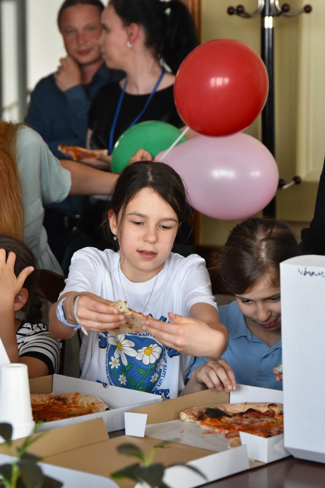 Na zakończenie, po emocjonującym dniu pełnym nowych doświadczeń, na dzieci czekał poczęstunek. Pizza i słodycze były doskonałym zwieńczeniem wizyty.