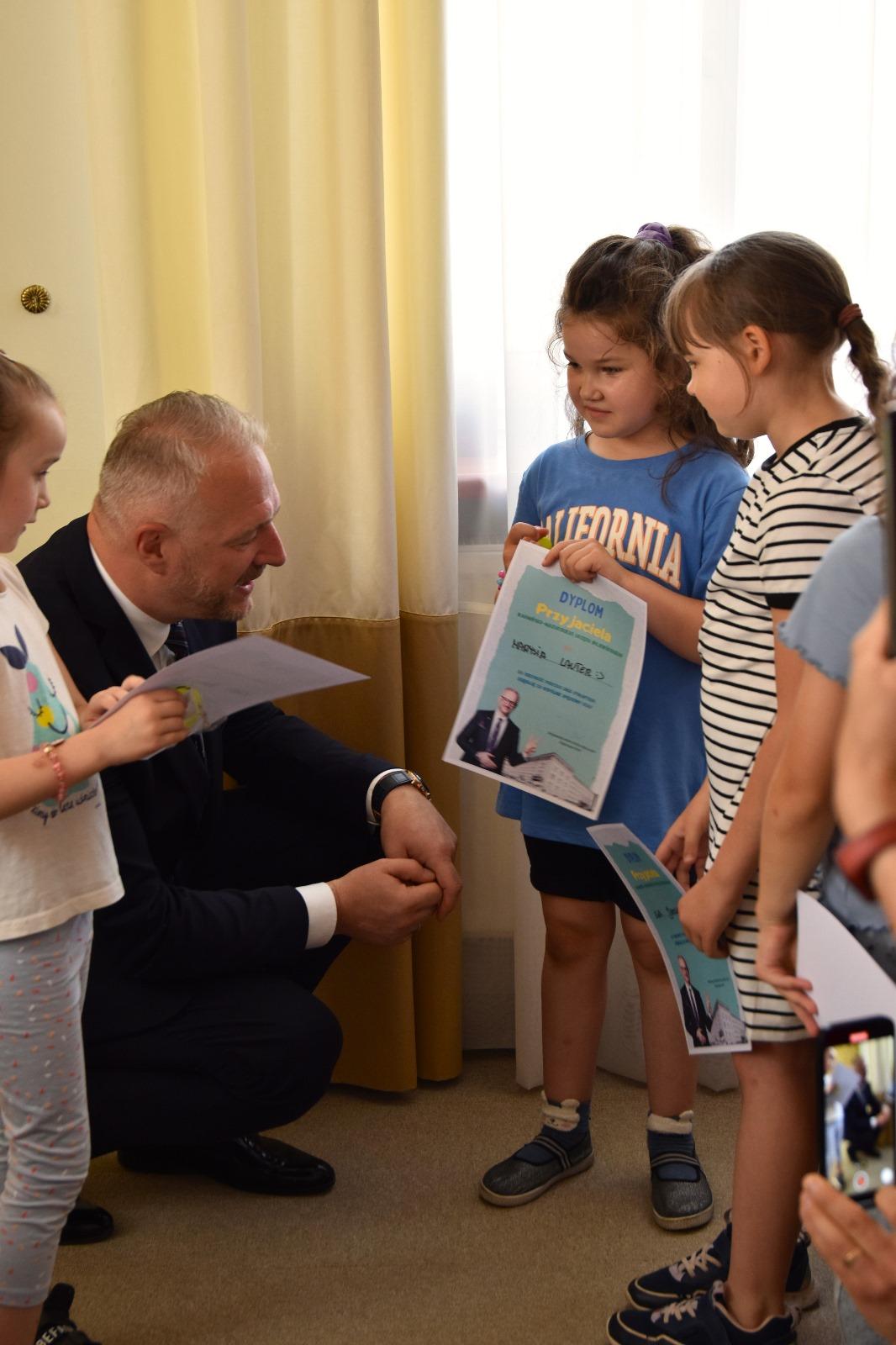 Oprócz licznych atrakcji ważnym momentem dnia było spotkanie z Wojewodą. Zgromadzone pod jego gabinetem dzieci miały okazję zadać pytania, dowiedzieć się więcej o roli Wojewody oraz posłuchać o jego codziennych obowiązkach i wyzwaniach. Wojewoda z chęcią odpowiadał na pytania, starając się przybliżyć młodym słuchaczom swoją pracę i jej znaczenie dla regionu.