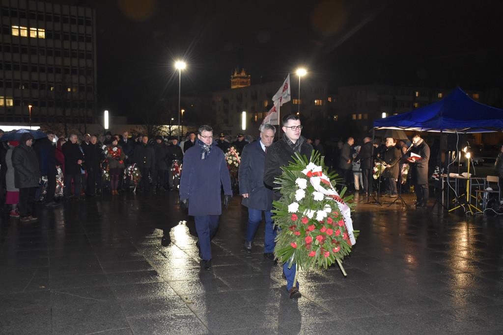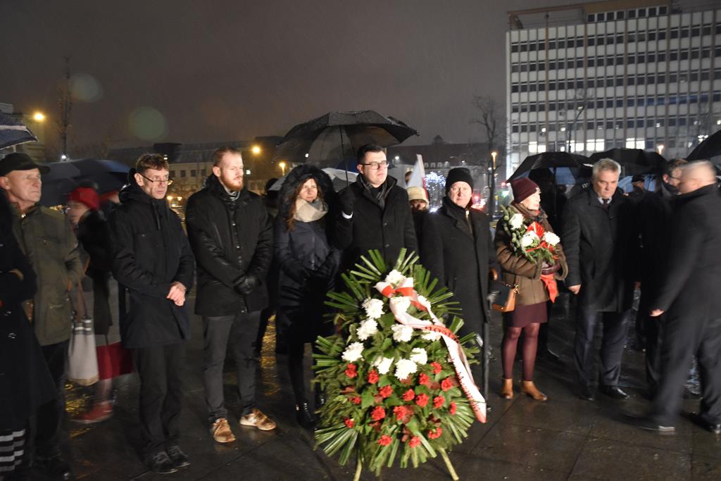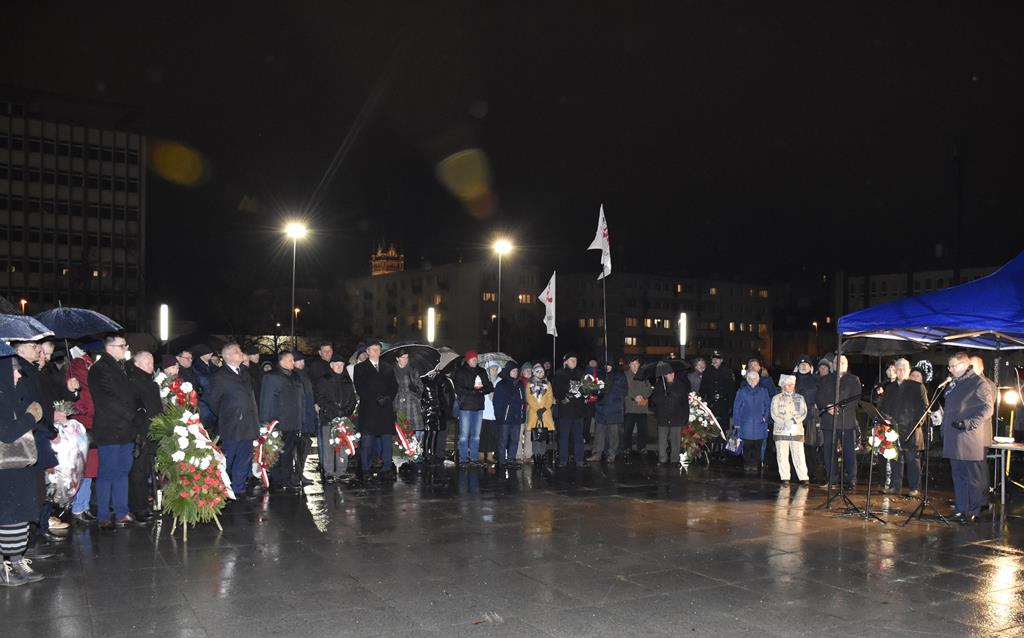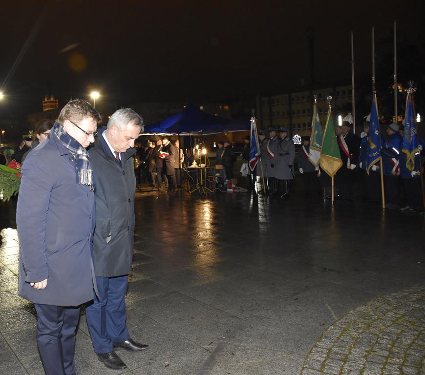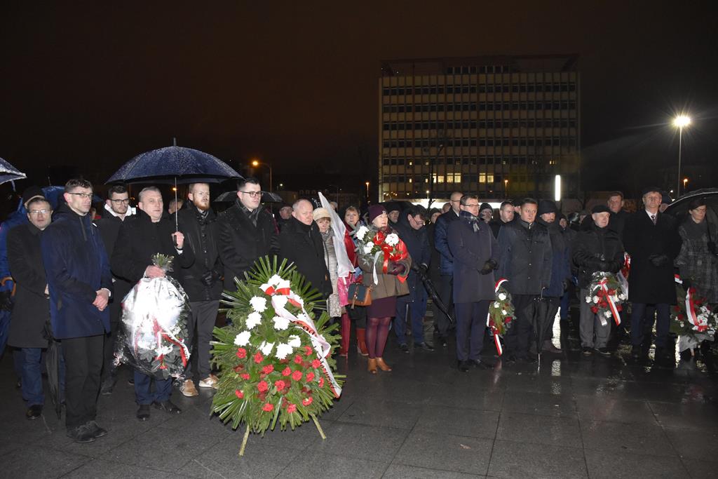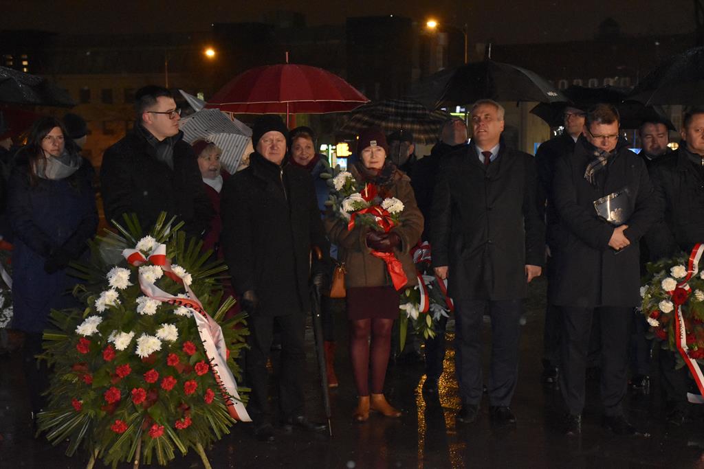 Pod Pomnikiem Wolności Ojczyzny przedstawiciele administracji rządowej, samorządowej, związkowej, służb mundurowych i zwykli mieszkańcy oddali hołd ofiarom śmiertelnym i represjonowanym.