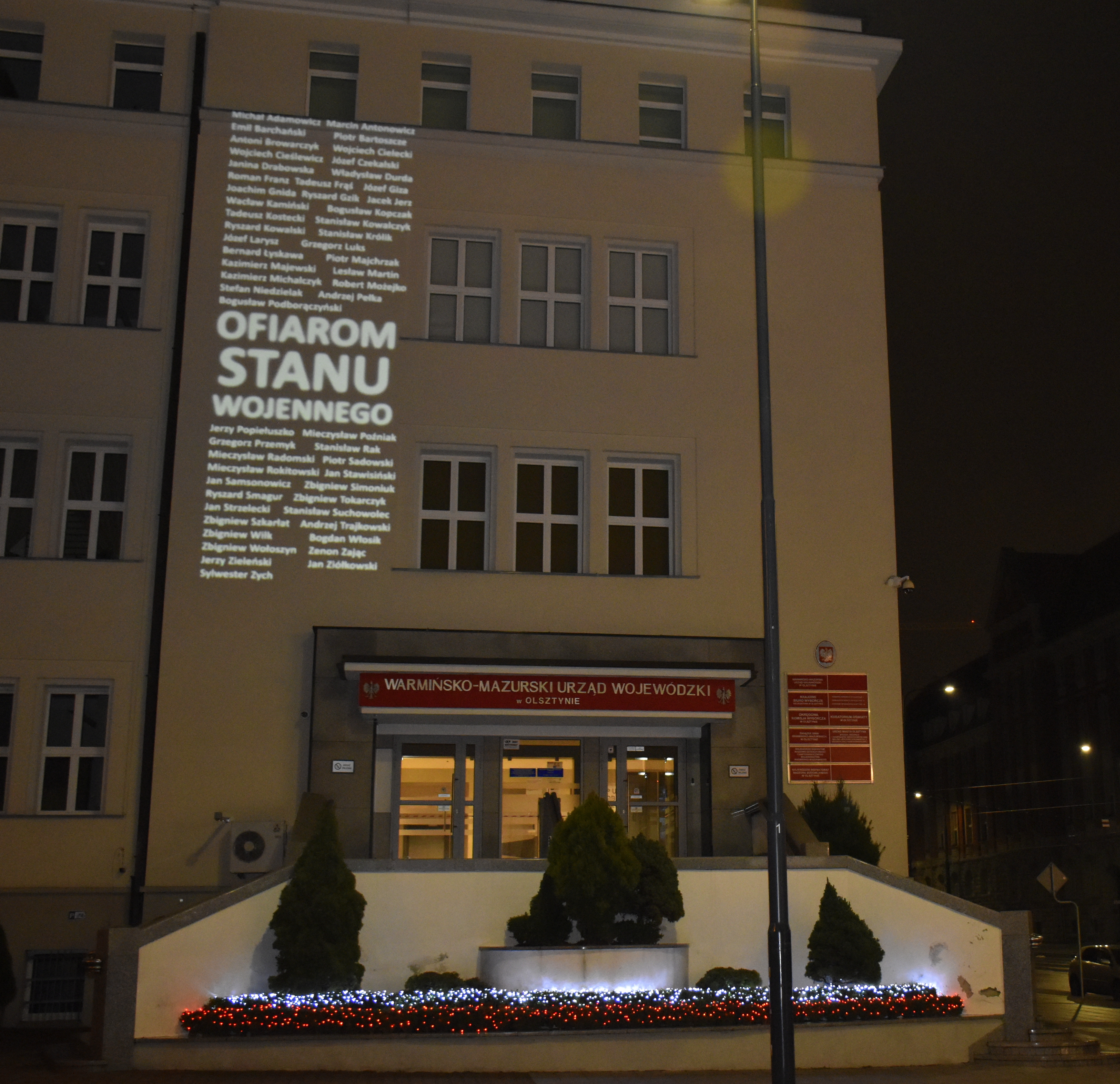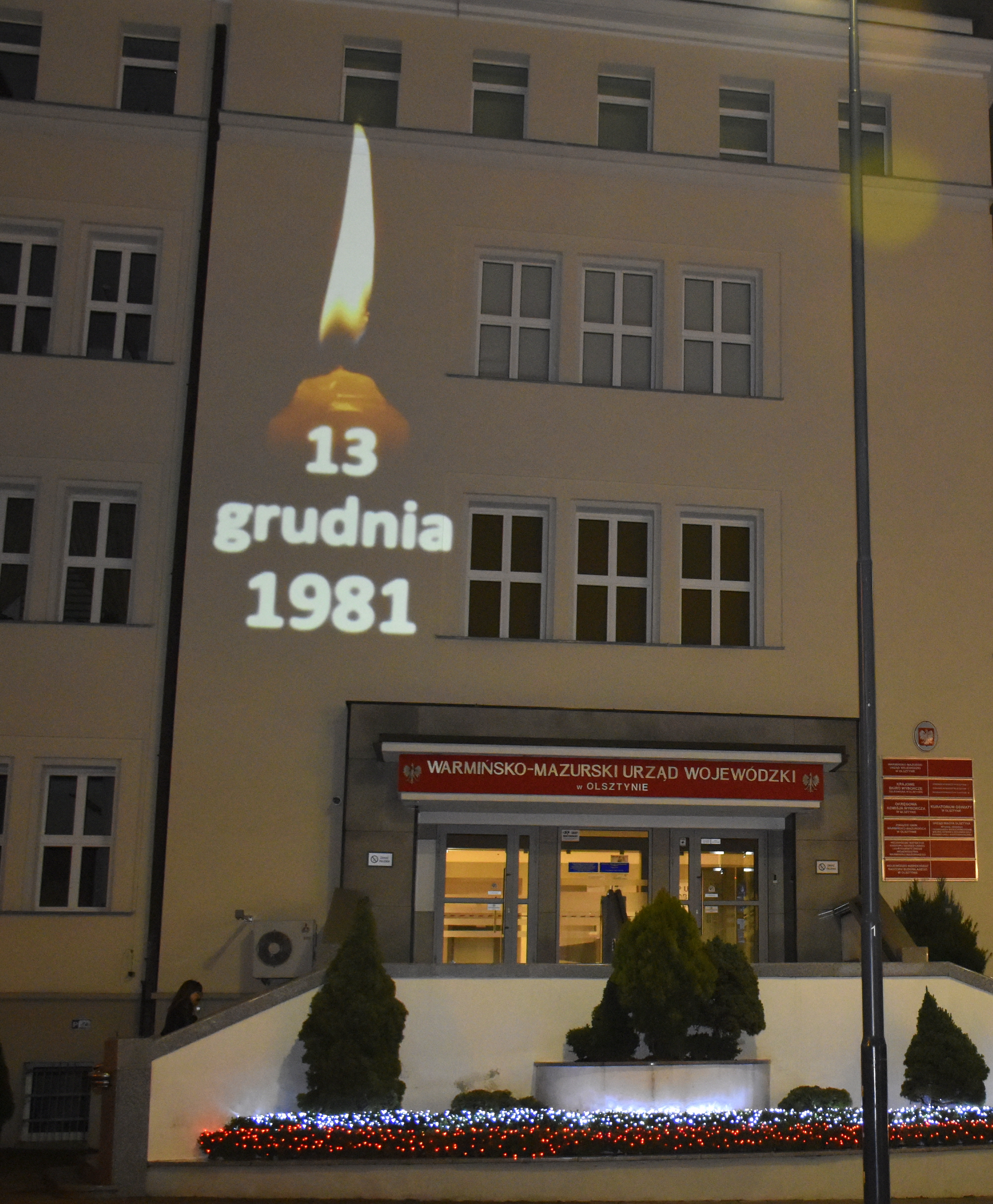 Po uroczystościach Wojewoda o 19:30 zapalił w swoim gabinecie Światło Wolności. Natomiast na ewelecji Warmińsko-Mazurskiego Urzędu wyświetlono iluminację upamiętniającą ofiary Stanu Wojennego.