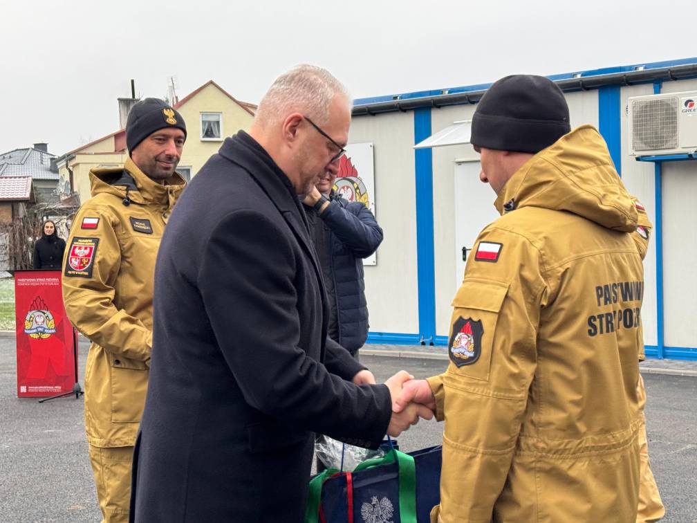 Wojewoda Radosław Król podziękował st. asp. Bogdanowi Wojtasowi za bohaterską postawę – podczas turnieju tenisa stołowego strażak natychmiast podjął akcję ratunkową, ratując życie człowieka.