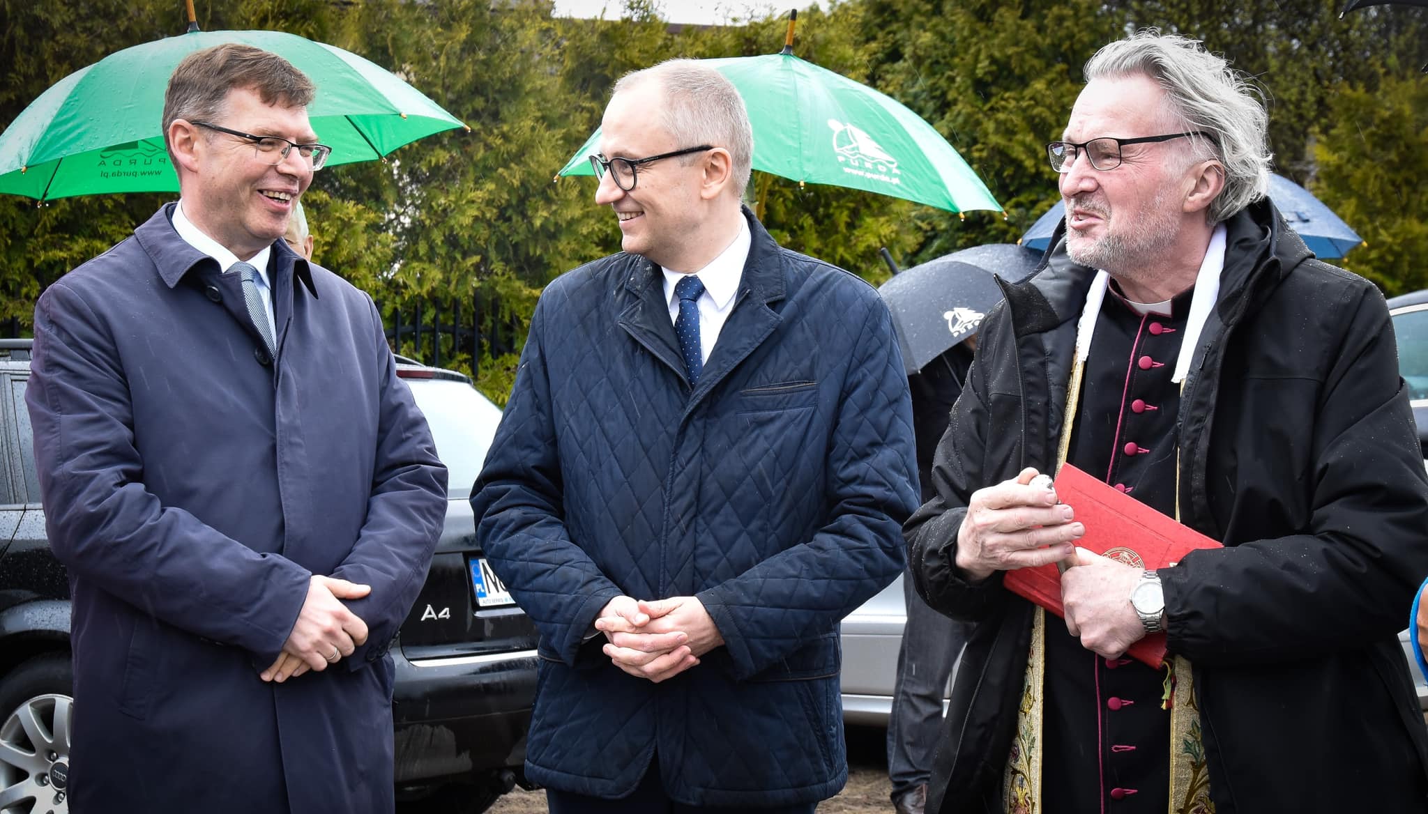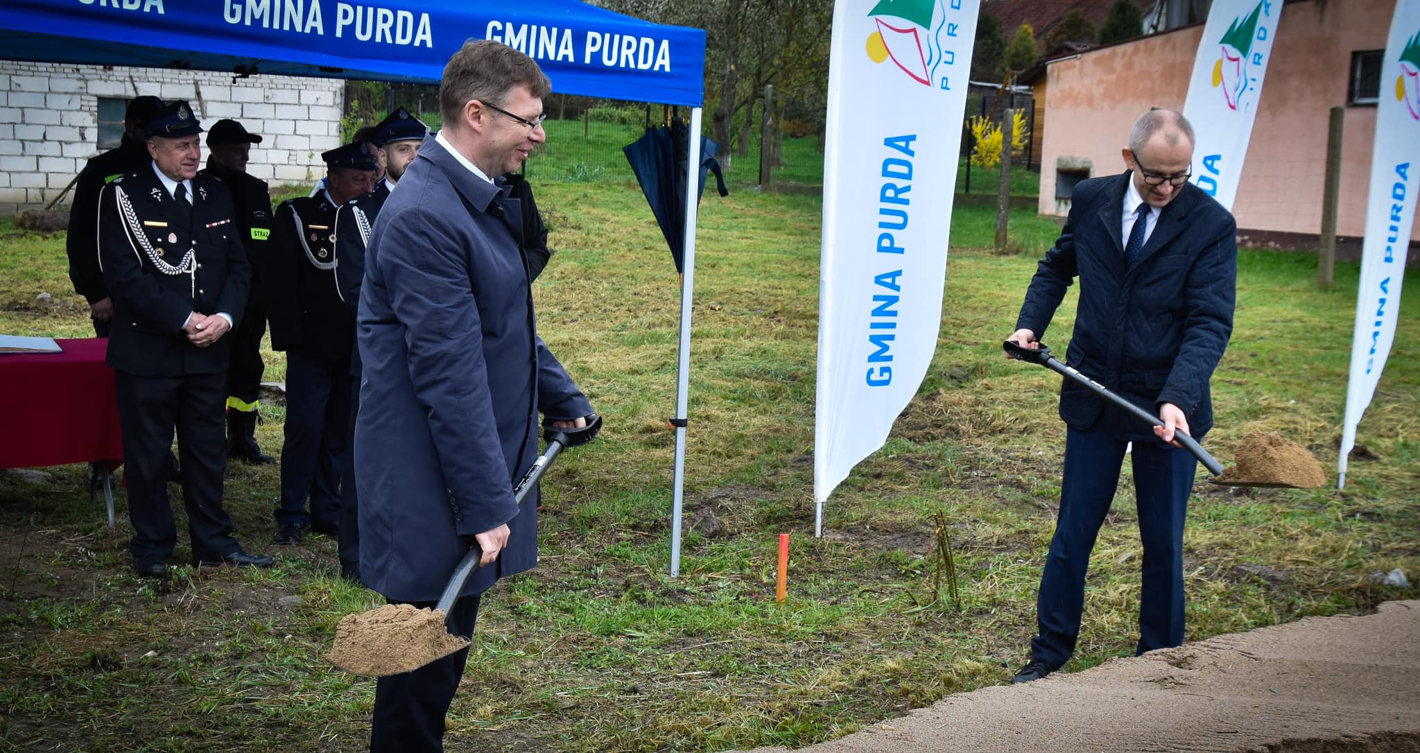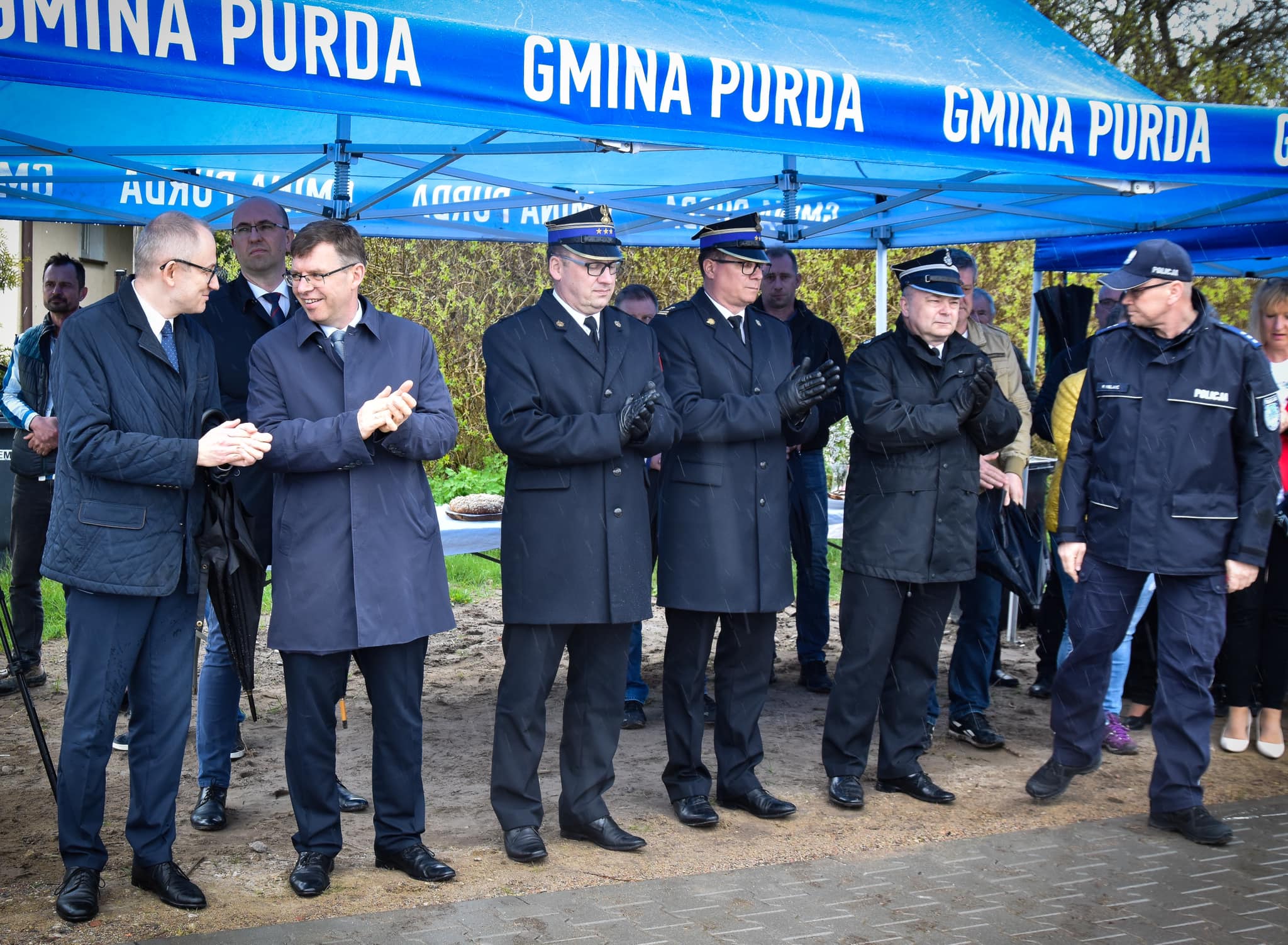 Mimo deszczowej pogody, w znakomitych nastrojach odbyło się otwarcie nowej drogi w Wyrandach oraz uroczyste rozpoczęcie budowy remizy Ochotniczej Straży Pożarnej w Purdzie. Obie inwestycje zostały dofinansowane z funduszy rządowych.