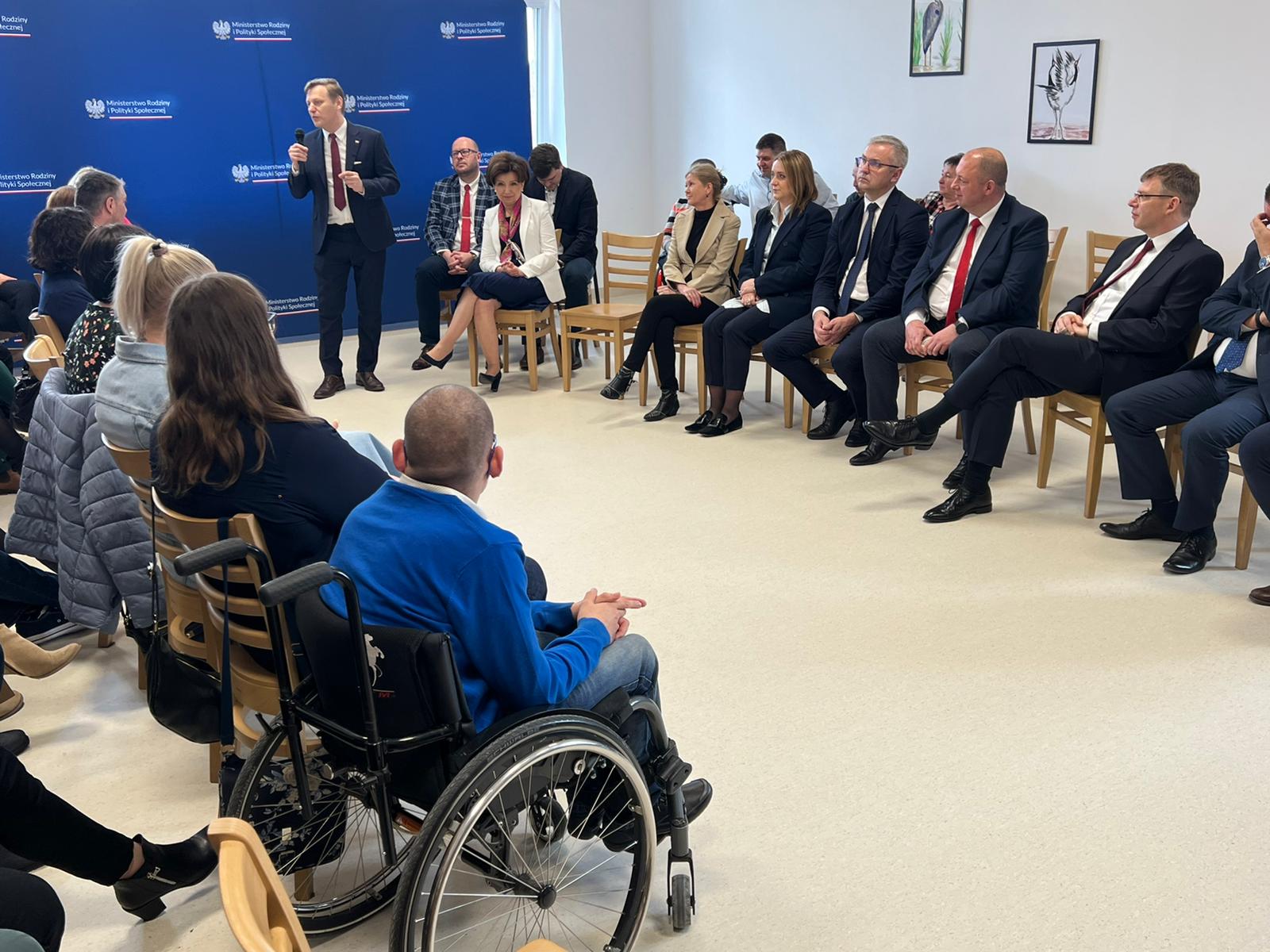 W spotkaniu udział wzięli: Minister Rodziny i Polityki Społecznej Marlena Maląg, Minister Norbert Maliszewski - szef Rządowego Centrum Analiz, Wiceminister Rozwoju i Technologii Olga Semeniuk-Patkowska, Wojewoda Warmińsko-Mazurski Artur Chojecki, Poseł Iwona Arent, Poseł Jerzy Małecki, Poseł Wojciech Kossakowski, Starosta olsztyński Andrzej Abako oraz Dyrektor Warmińsko-Mazurskiego oddziału PFRON Mateusz Szkaradziński.