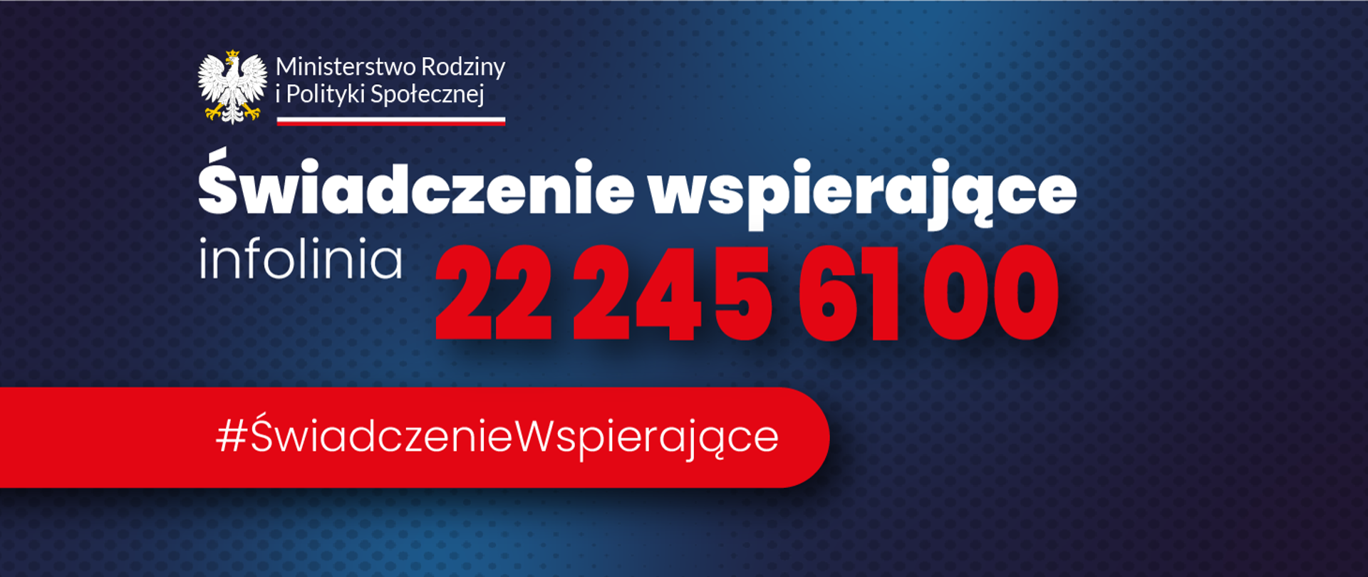 Ministerstwo Rodziny i Polityki Społecznej uruchomiło infolinię dedykowaną nowemu świadczeniu wspierającemu dla osób z niepełnosprawnościami. Pod numerem telefonu 22 245-61-00 osoby zainteresowane mogą uzyskać informacje zarówno na temat wydawanych przez wojewódzkie zespoły decyzji o potrzebie wsparcia, jak i na temat samego świadczenia wspierającego.