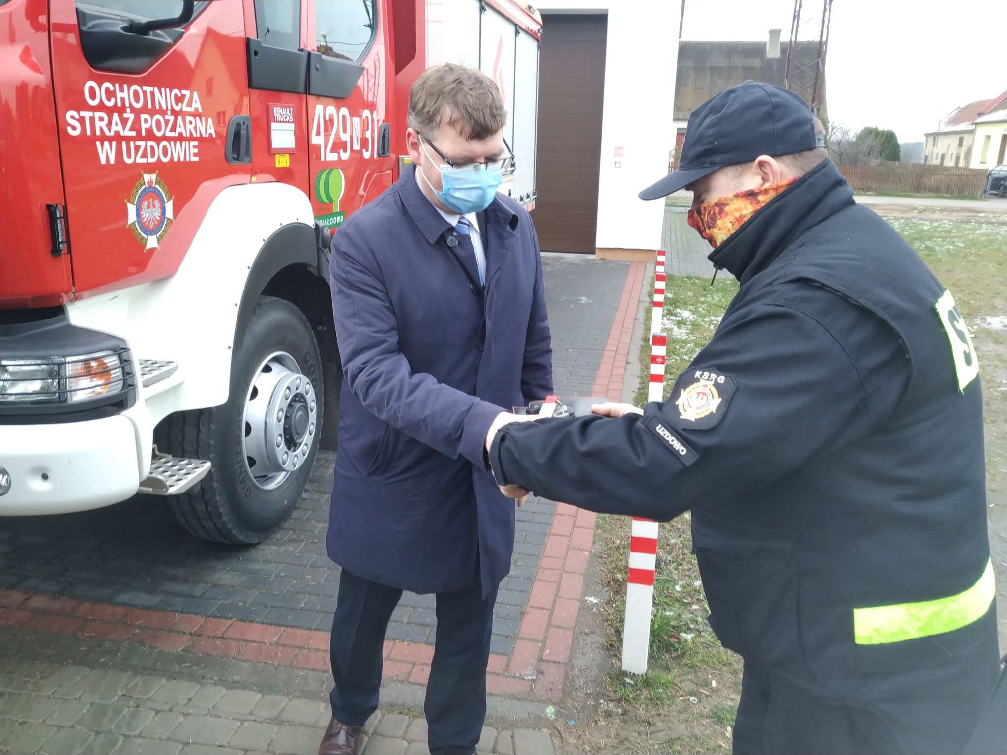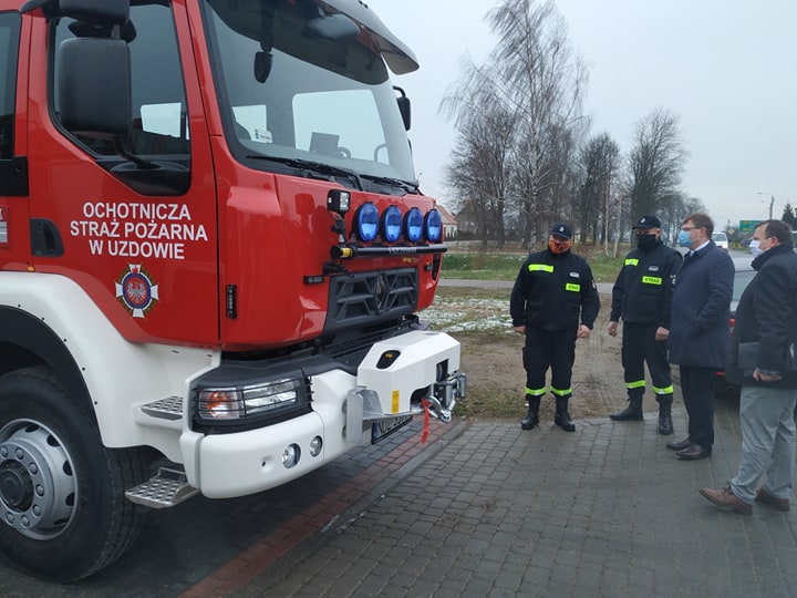 W czasie swojej obecności przekazał kluczyki do nowego wozu strażackiego dla OSP w Uzdowie.