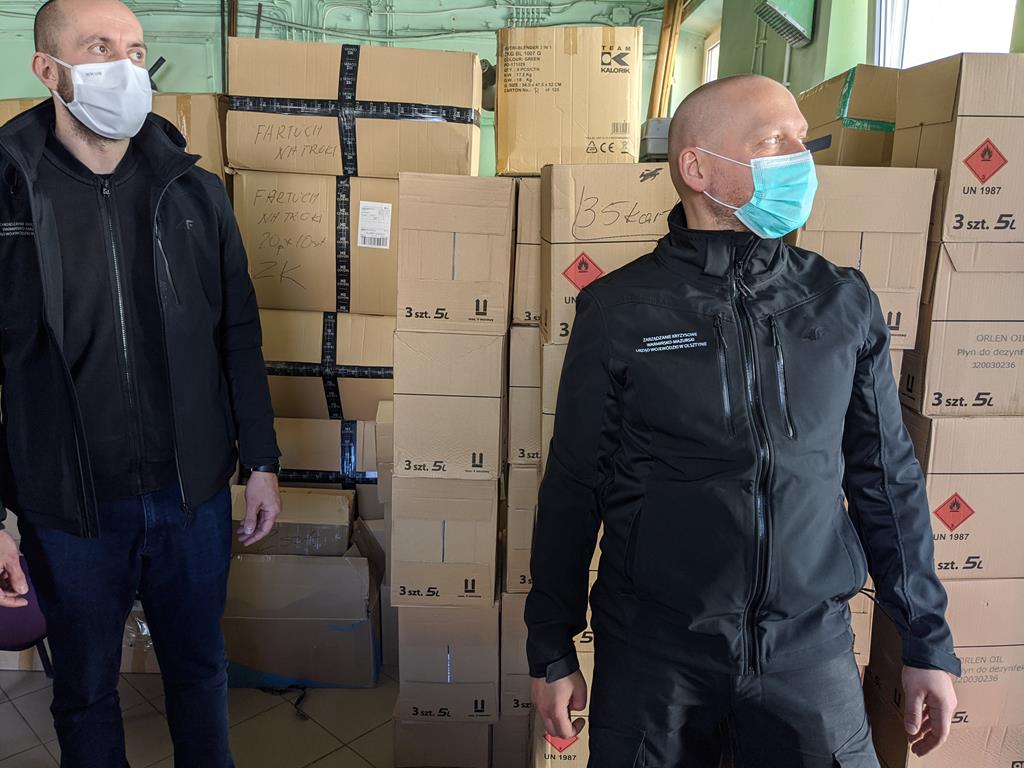 Transport z magazynów Warmińsko-Mazurskiego Urzędu Wojewódzkiego zapewnili strażacy z Komend Powiatowych Państwowej Straży Pożarnej oraz druhowie z Ochotniczych Straży Pożarnych. Płyny trafiły do wszystkich powiatów w województwie. W sumie 31 055 litrów, czyli ok. 45 litrów płynu na każdą placówkę.