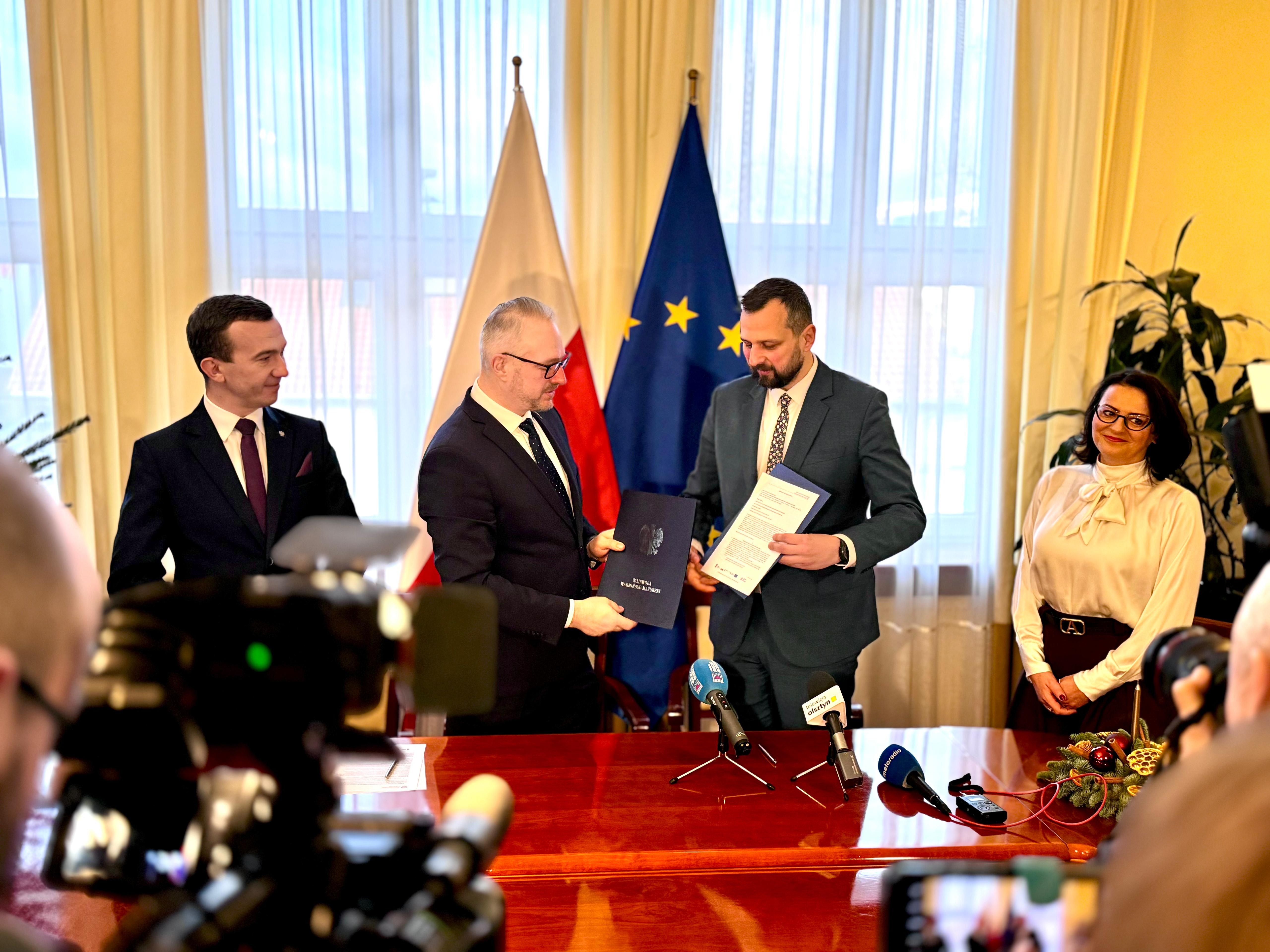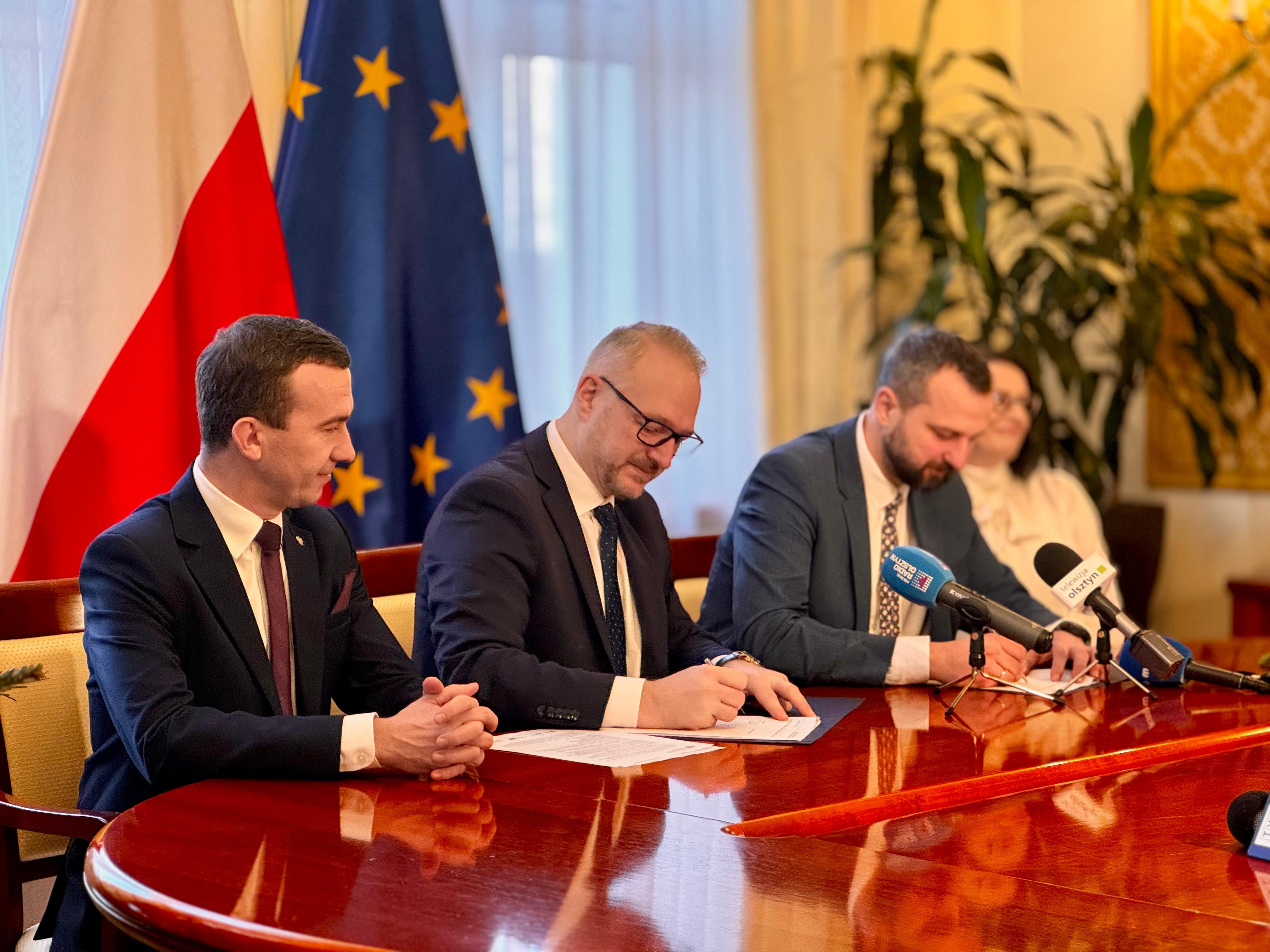 Wojewoda Warmińsko-Mazurski Radosław Król, Wicewojewoda Mateusz Szauer oraz Prezydent Miasta Olsztyn Robert Szewczyk podpisali dzisiaj umowę na utworzenie nowych miejsc opieki dla dzieci w wieku do lat 3 w ramach Programu „Aktywny Maluch 2022–2029”.