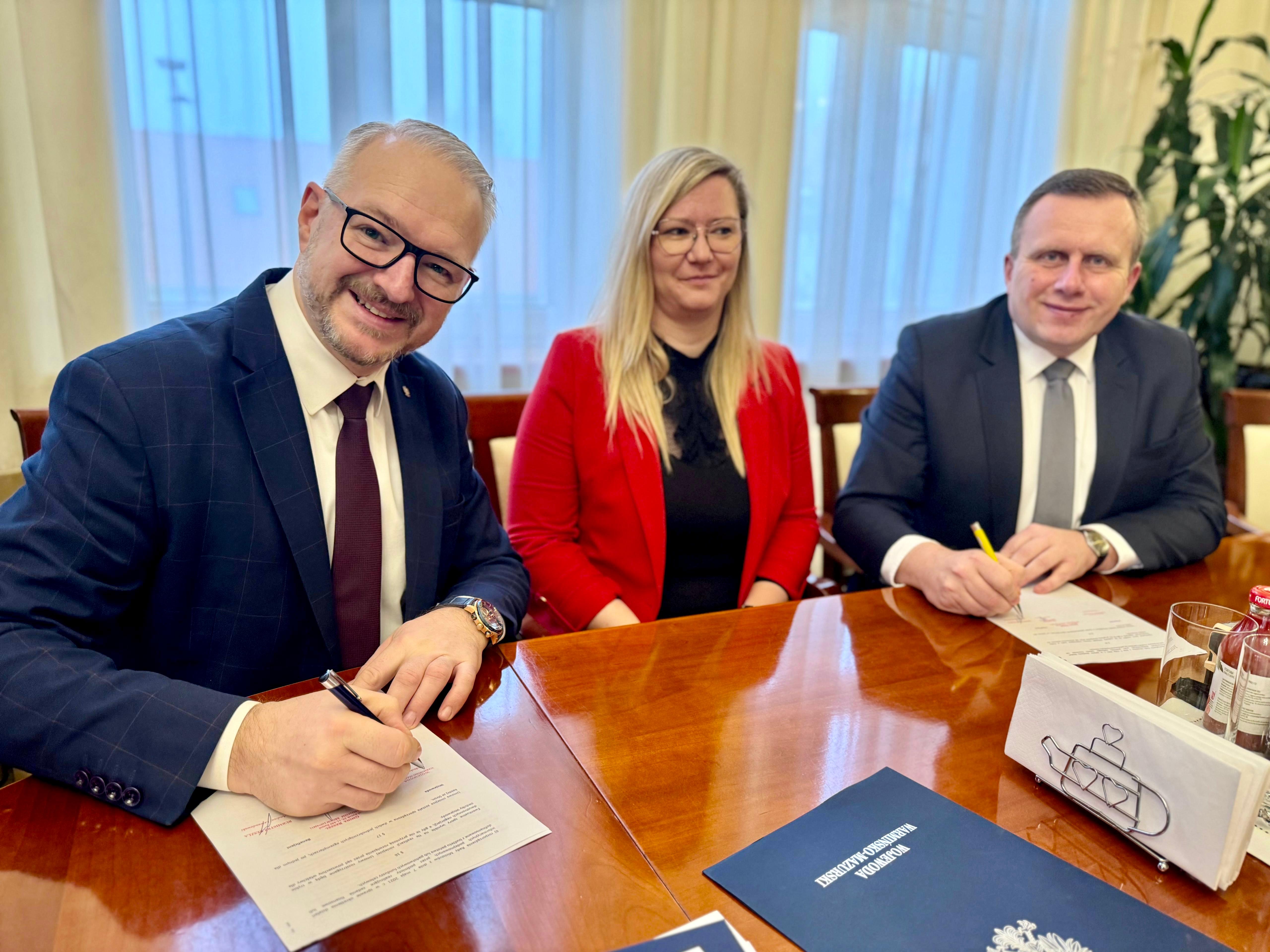 W czwartek, 12 grudnia br. w Urzędzie Wojewódzkim w Olsztynie podpisano umowę na realizację strategicznej inwestycji w miejscowości Kocibórz. Wojewoda Radosław Król, Burmistrz Reszla Andrzej Lewandowski przy kontrasygnacie skarbnika gminy Marty Gradzewicz sfinalizowali porozumienie, które umożliwi budowę sieci kanalizacji sanitarnej i kontenerowej oczyszczalni ścieków.