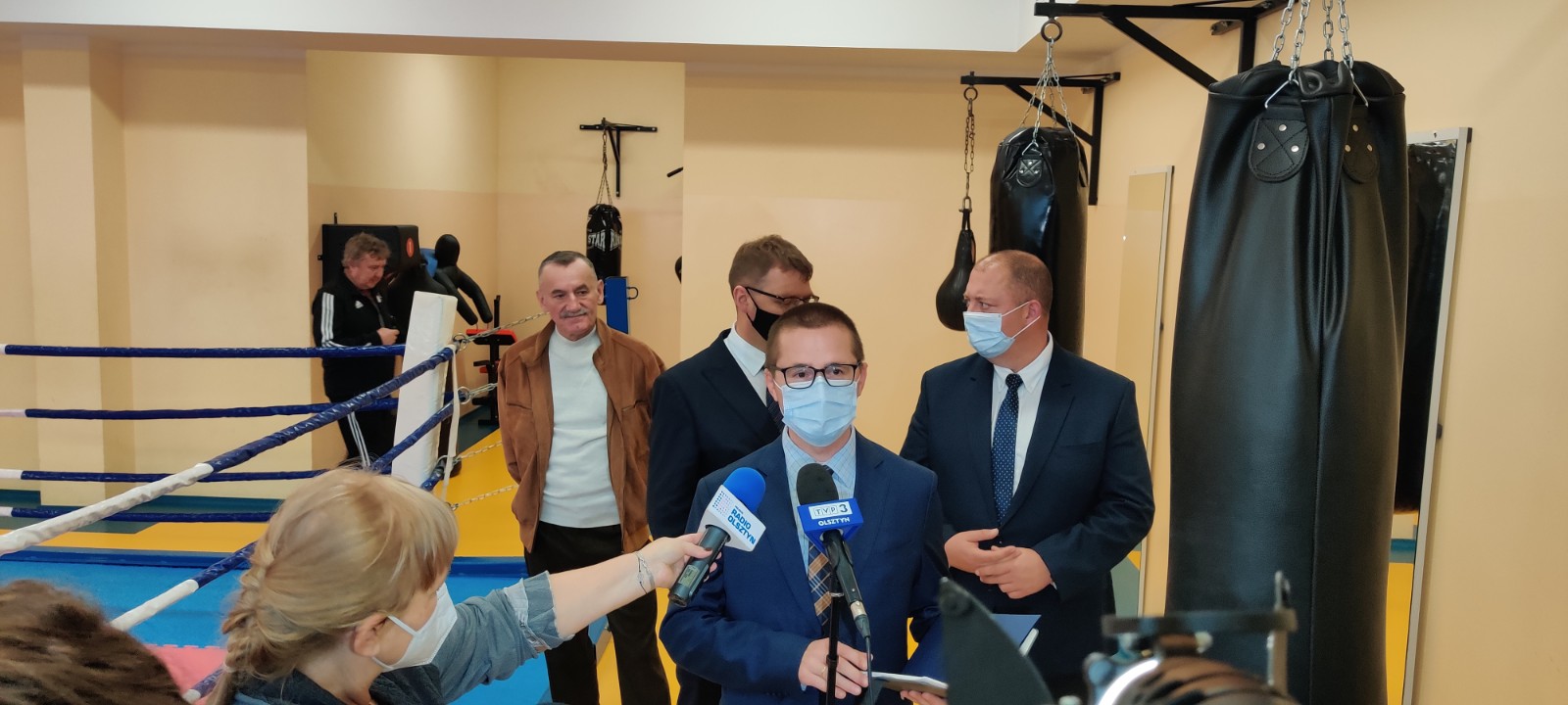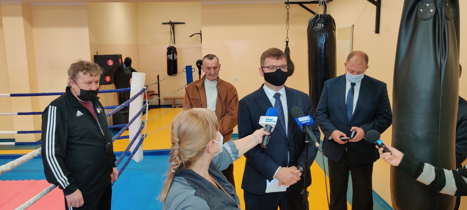 Wojewoda Warmińsko-Mazurski Artur Chojecki razem z posłem na sejm RP Wojciechem Kossakowskim uczestniczył w briefingu prasowym dotyczącym podsumowania realizacji programów: Klub i Sportowa Polska, który odbył się w Miejskim Klubie Bokserskim Mazur Ełk.