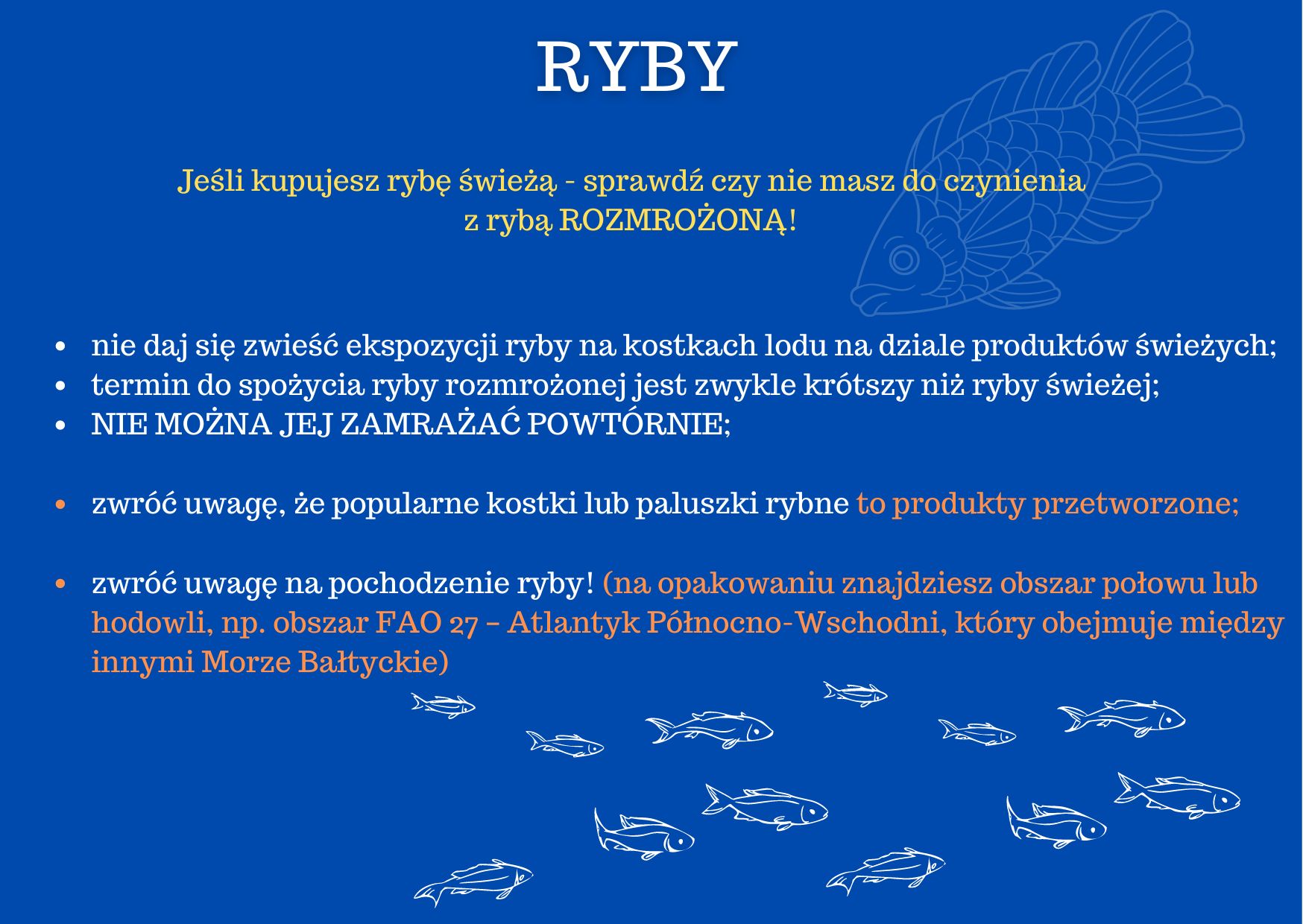 - jeśli kupujesz rybę świeżą - sprawdź czy nie masz do czynienia z rybą ROZMROŻONĄ