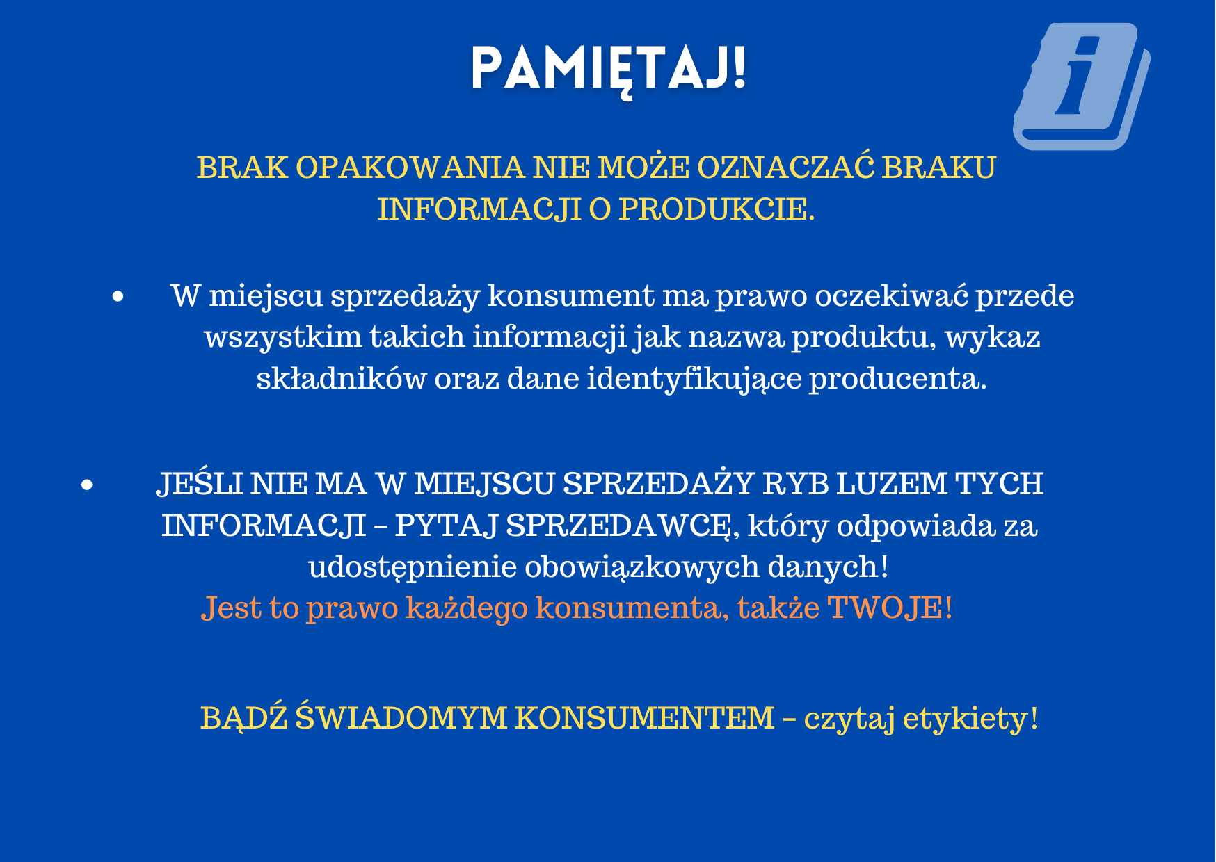JEŚLI NIE MA W MIEJSCU SPRZEDAŻY RYB LUZEM TYCH INFORMACJI – PYTAJ SPRZEDAWCĘ, który odpowiada za udostępnienie obowiązkowych danych!