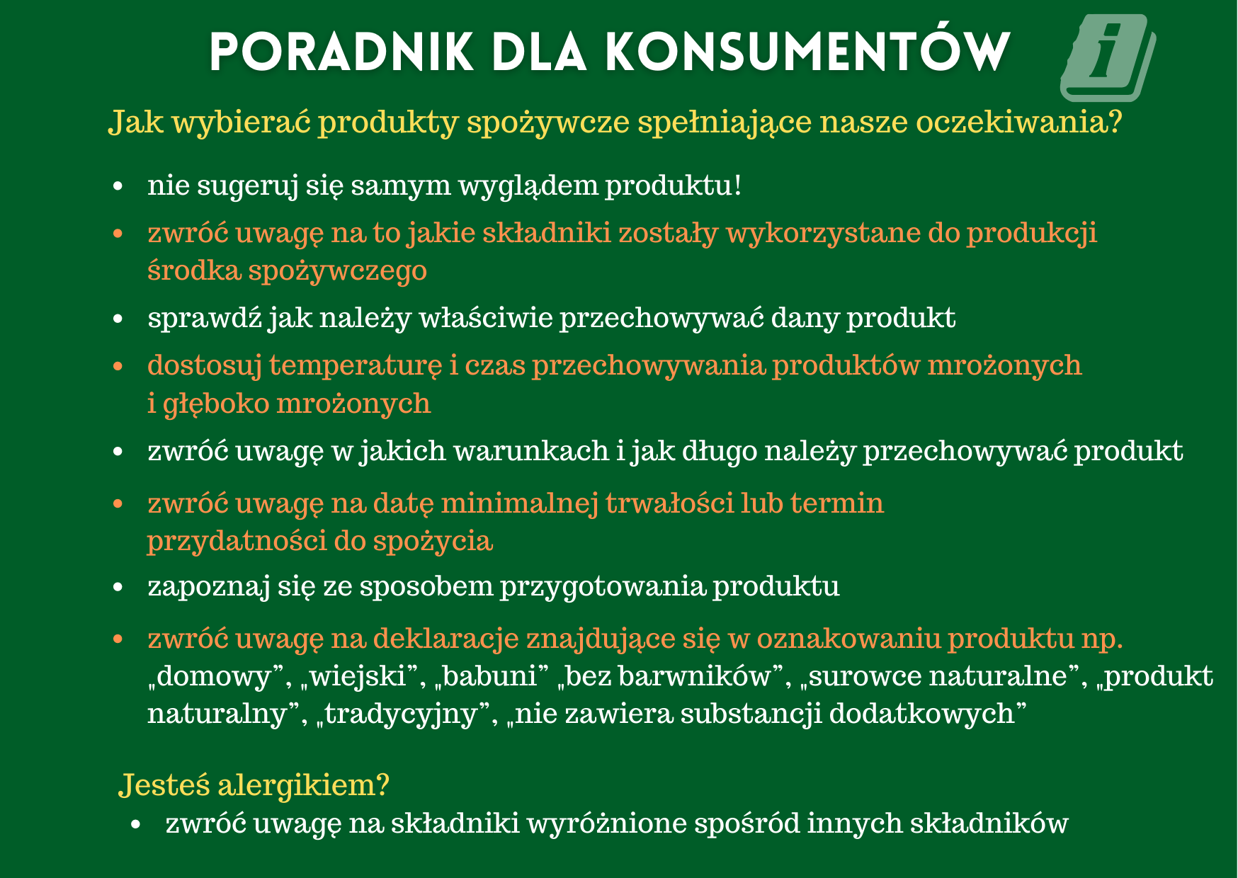 - zwróć uwagę na to jakie składniki zostały wykorzystane do produkcji środka spożywczego,
