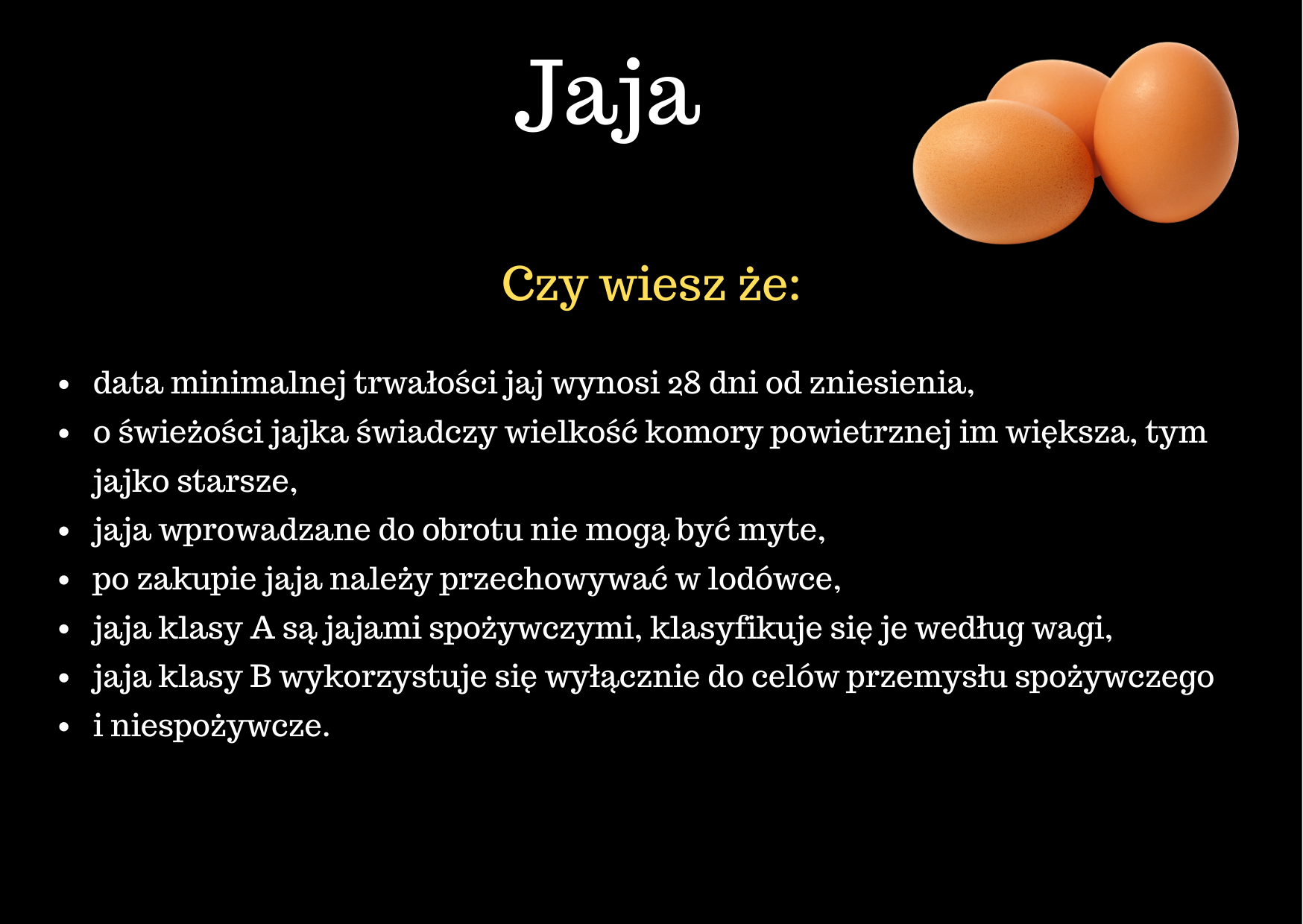 - o świeżości jajka świadczy wielkość komory powietrznej im większa, tym jajko starsze,