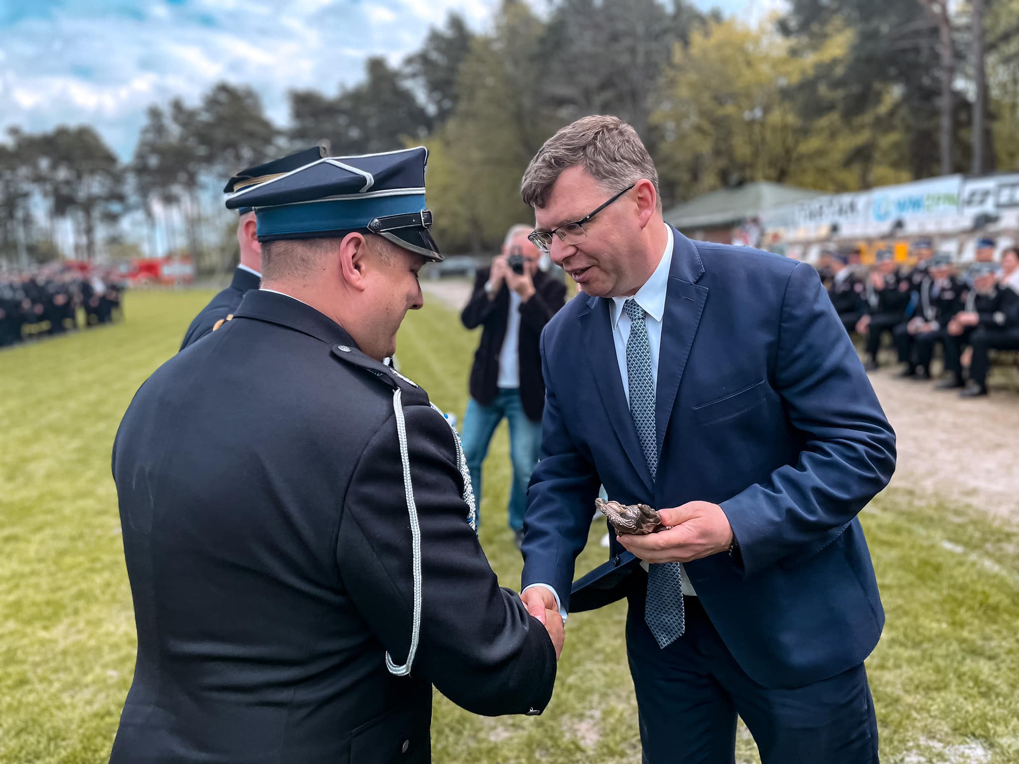 "Każdego dnia na dźwięk syreny udajecie się do akcji ratowniczych i zapewniacie w ten sposób bezpieczeństwo mieszkańcom powiatu nidzickiego. Jesteście bardzo liczną, profesjonalną i sprawną organizacją, która każdego dnia troszczy się o życie i mienie mieszkańców naszego regionu. Wyrażam ogromną wdzięczność za Waszą służbę, w czasie której niejednokrotnie narażacie własne życie. Życzę Wam, aby z każdym wyjazdem na akcję nieodmiennie i szczęśliwie wiązał się powrót do najbliższych, do tych którzy czekają na Was w domach. Życzę, aby błogosławieństwo św. Floriana towarzyszyło Wam każdego dnia Waszego życia" - głos zabrał Wojewoda Warmińsko-Mazurski, Artur Chojecki.