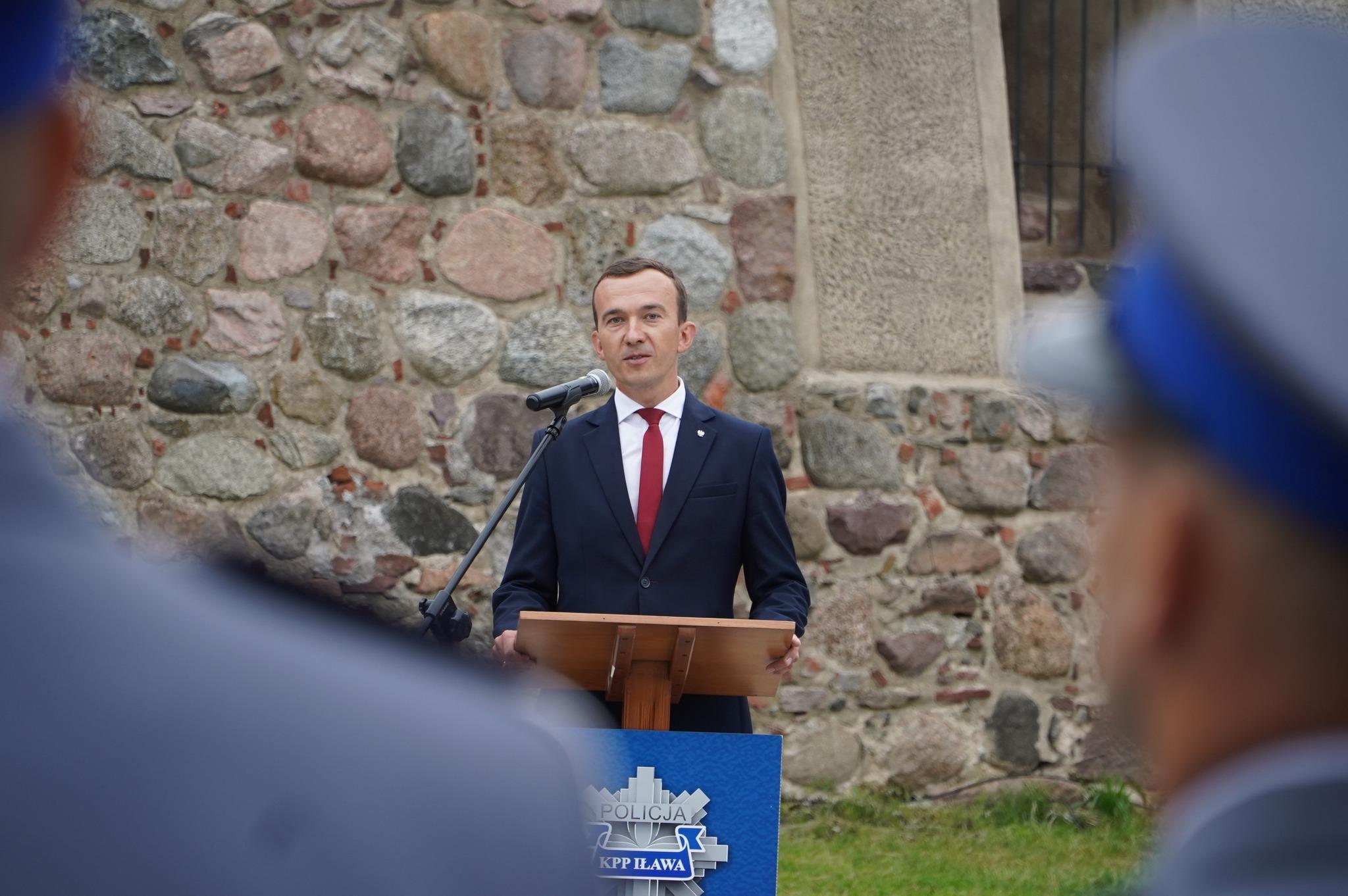 Wicewojewoda Mateusz Szauer w swoim wystąpieniu podziękował wszystkim funkcjonariuszkom i funkcjonariuszom oraz pracownikom administracyjnym za ich codzienny trud, poświęcenie i profesjonalizm. Podkreślił, że ich praca jest nieoceniona dla bezpieczeństwa mieszkańców powiatu iławskiego, którzy dzięki nim mogą czuć się bezpieczniej, a nasz region rozwija się w atmosferze spokoju i stabilności. Złożył również życzenia, aby każdy dzień przynosił im poczucie spełnienia oraz szacunek i wdzięczność wszystkim, którym pomagają.