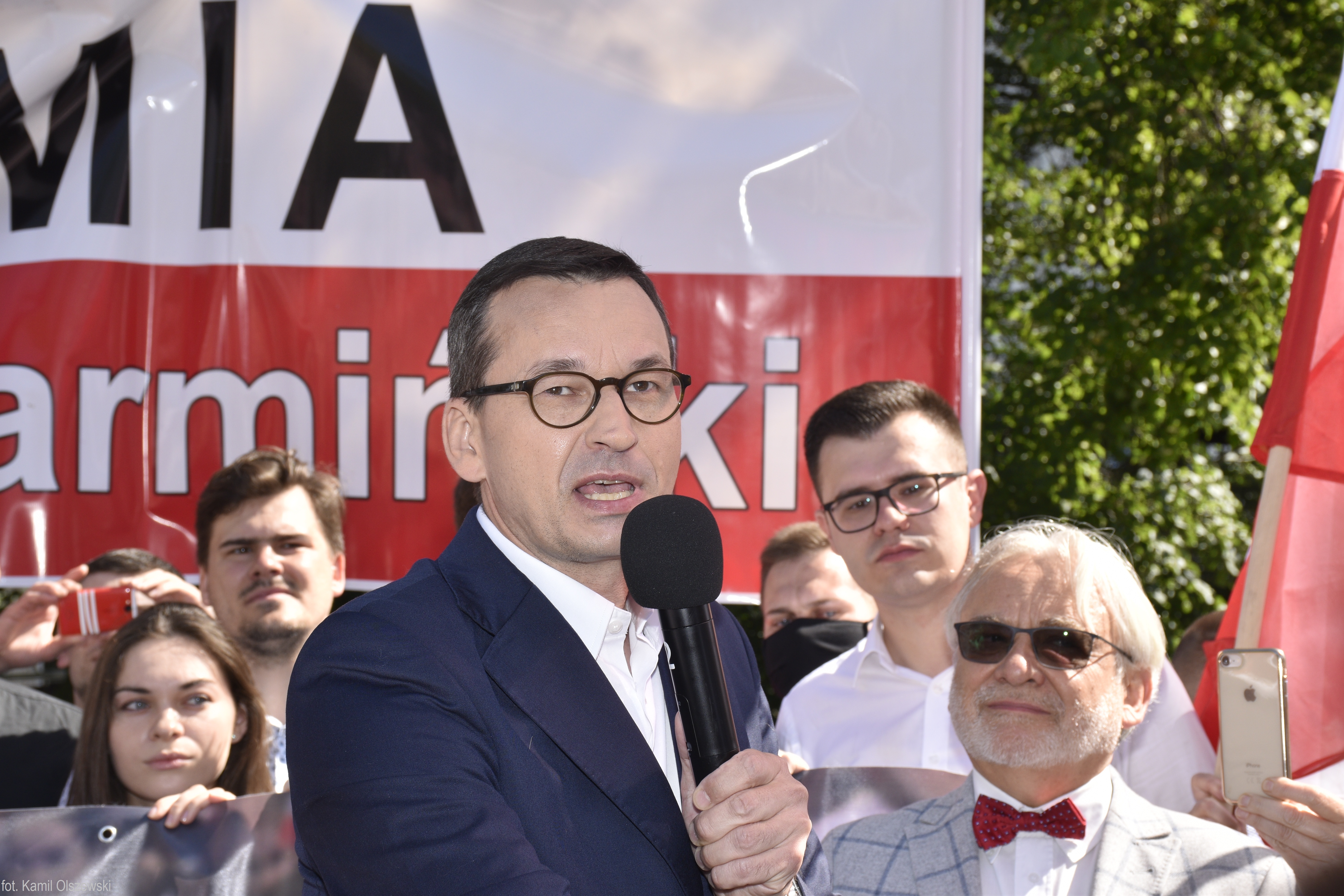 Szef rządu przypomniał, że przez lata największymi problemami warmińsko-mazurskiego były bezrobocie i wykluczenie komunikacyjne.– To była zmora warmińsko-mazurskiego w czasach III RP, a zwłaszcza w czasach, gdy pan Rafał Trzaskowski był w rządzie – powiedział premier. Jak dodał, dzięki rządom PiS obie te kwestie uległy zmianie na lepsze. Premier wyliczył, że w regionie przebudowuje się drogę kolejową 219 do Ełku oraz drogi S16, S 7 i częściowo przebiegającą przez województwo S 61.