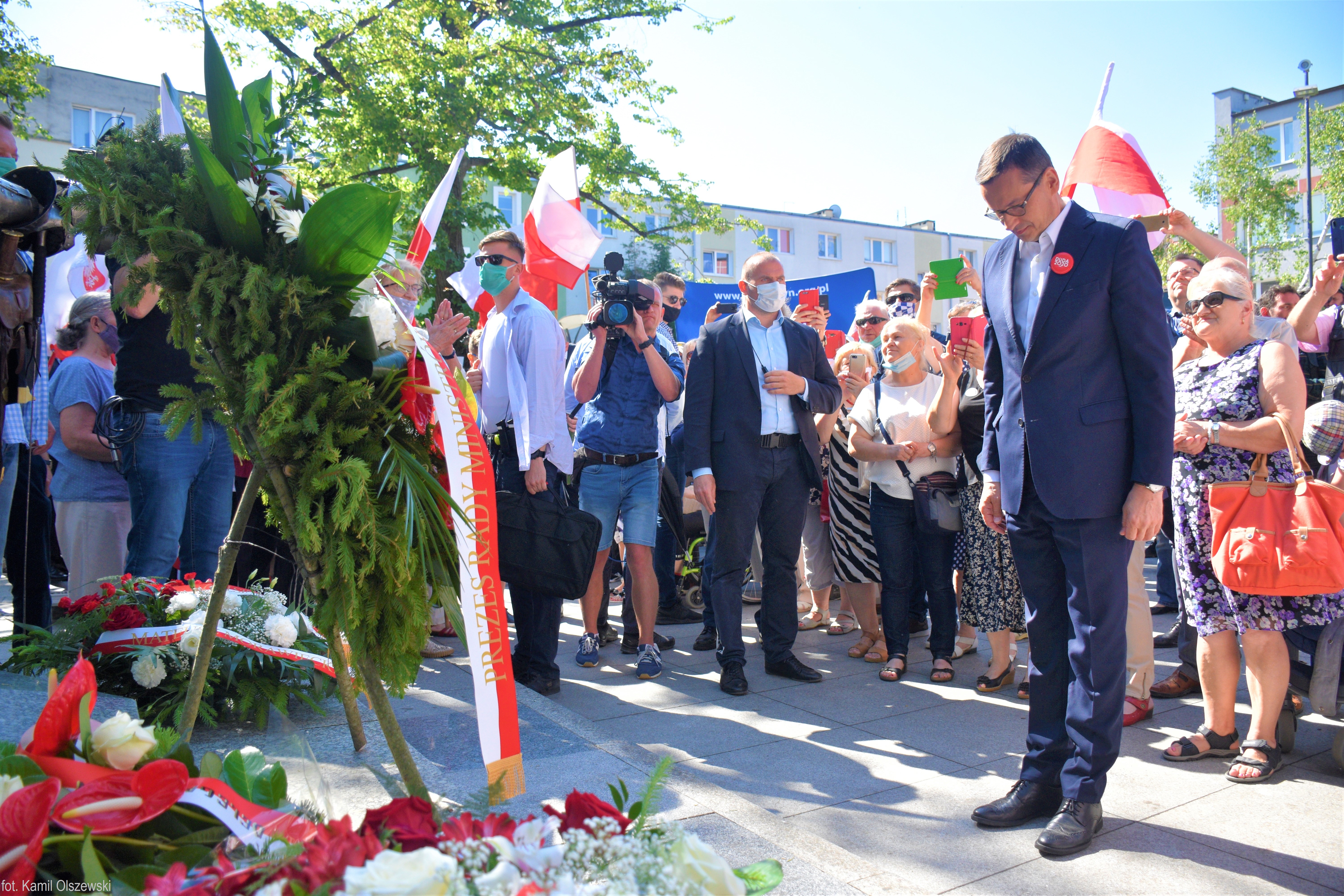 Następnie w Olsztynie złożył kwiaty pod kolumną Orła Białego na Placu Konsulatu Polskiego. Była też okazja do spotkania z mieszkancami, którzy owacyjnie przyjęli Pana Premiera.