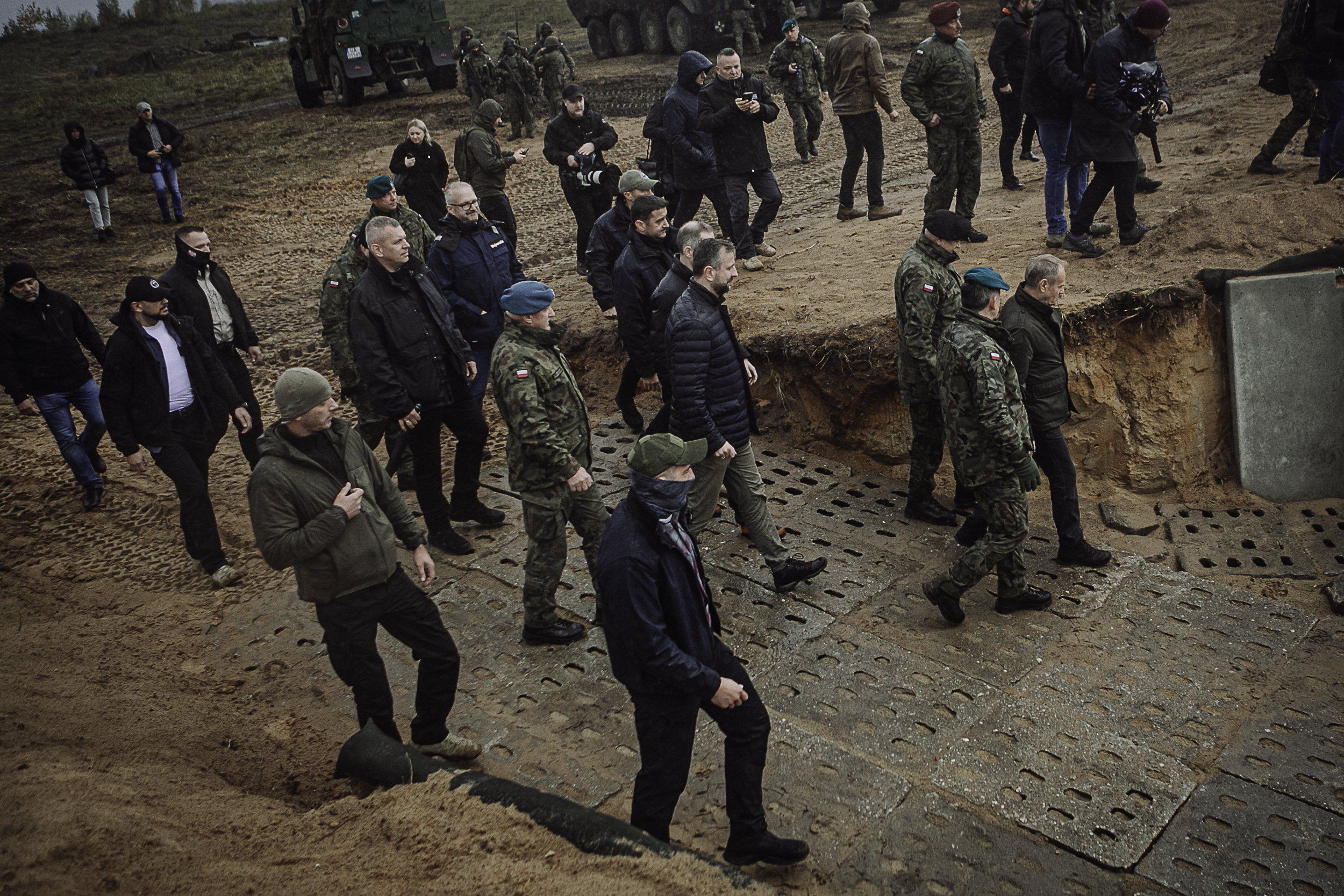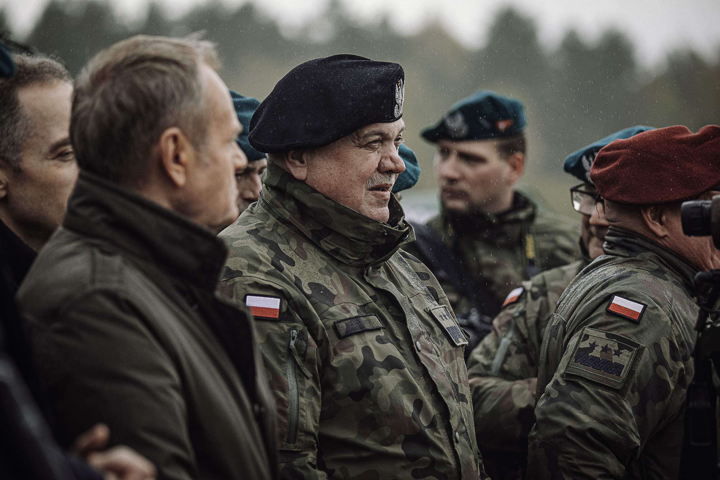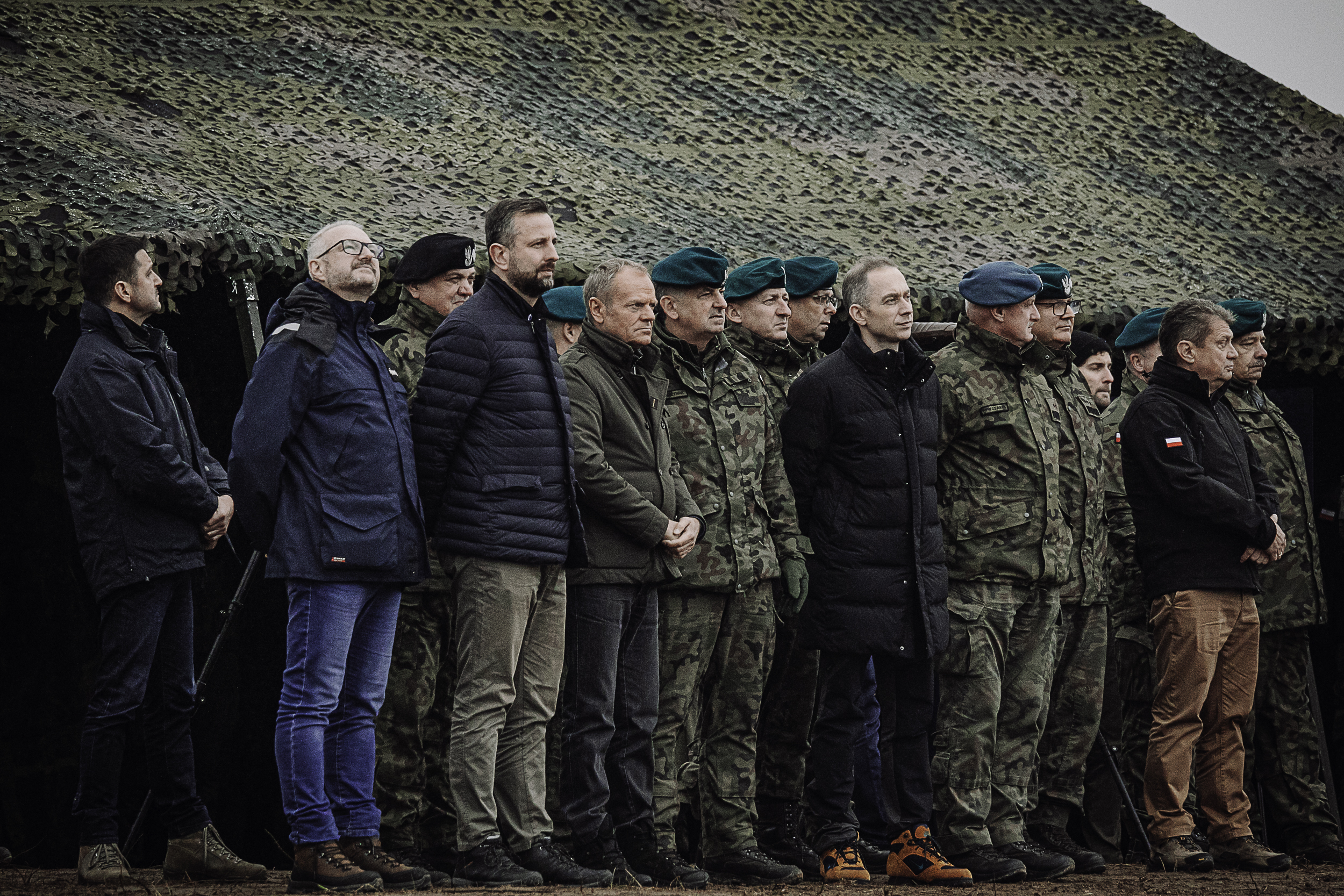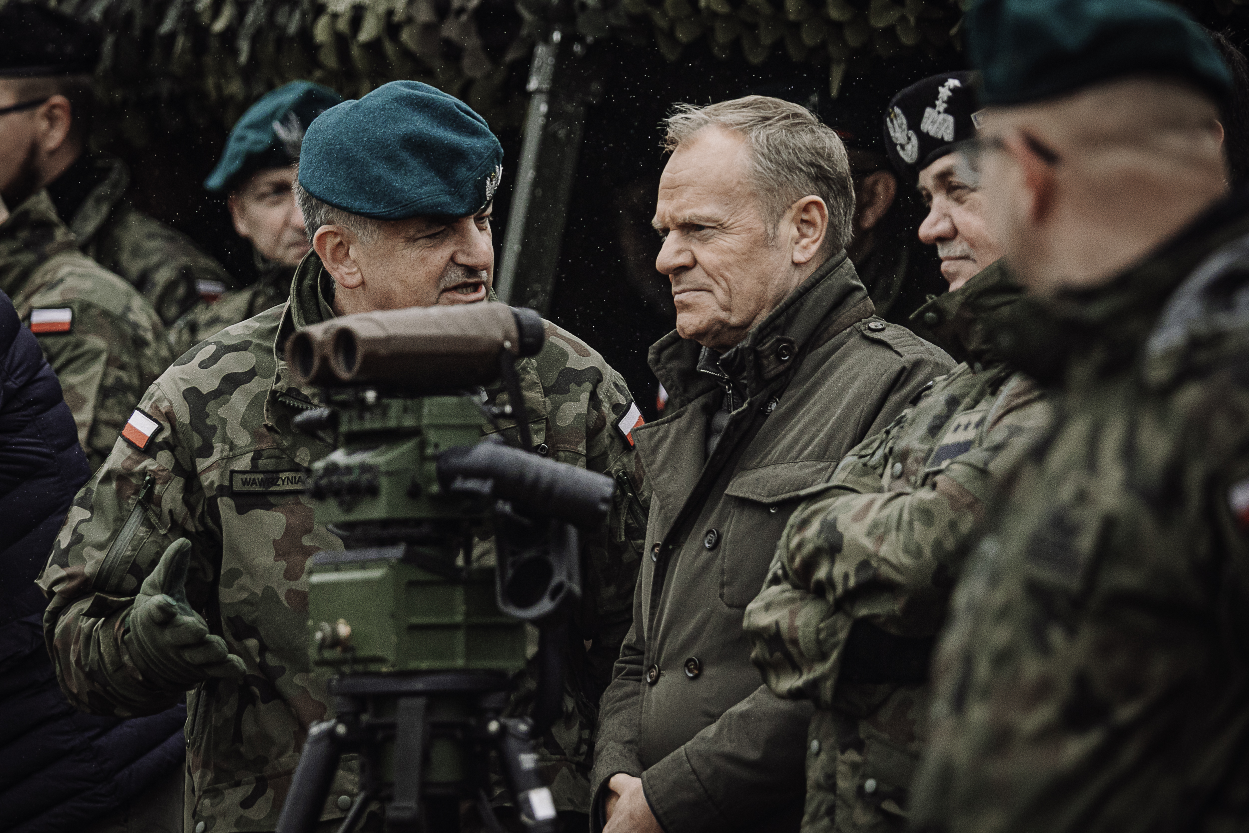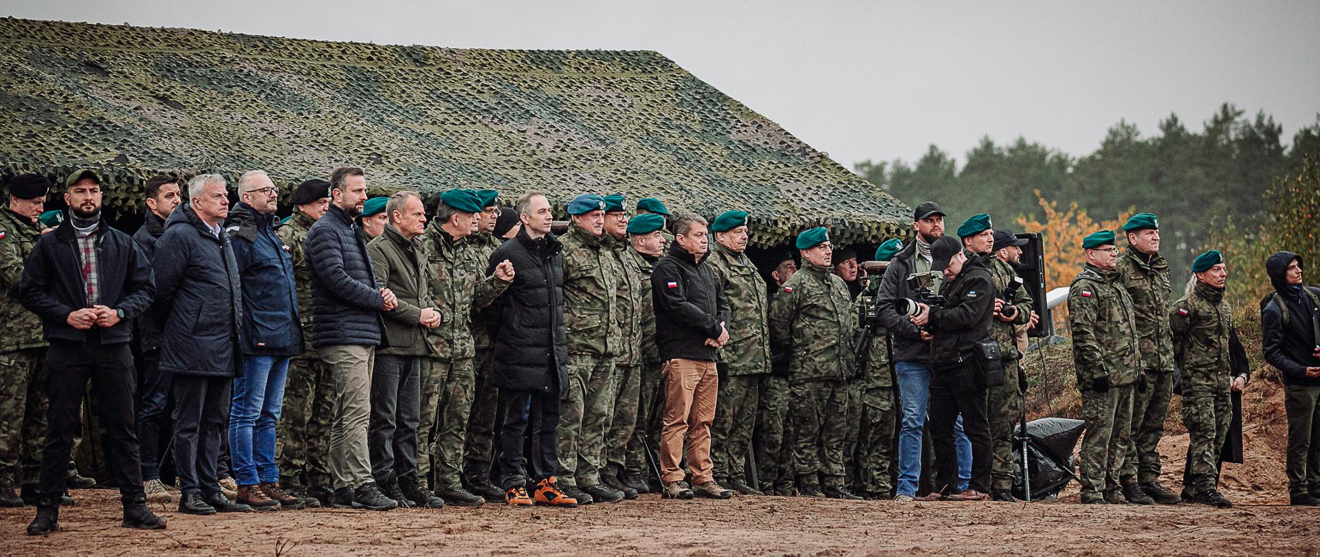 Premier Donald Tusk, wicepremier, minister obrony Władysław Kosiniak-Kamysz i wiceminister obrony Cezary Tomczyk oraz wojewoda warmińsko-mazurski Radosław Król obserwowali na poligonie w Orzyszu testowanie elementów do budowy Tarczy Wschód.