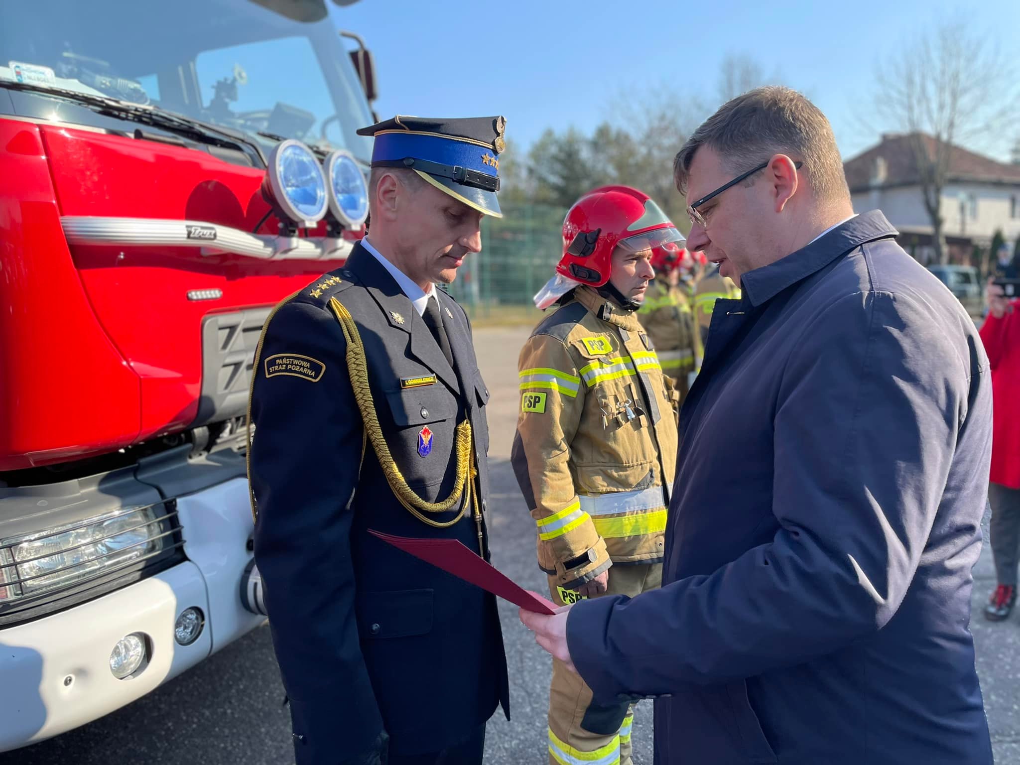 Wojewoda Warmińsko-Mazurski Artur Chojecki uczestniczył w czwartek 17 marca w przekazaniu samochodów pożarniczo-gaśniczych jednostkom Straży Pożarnej.