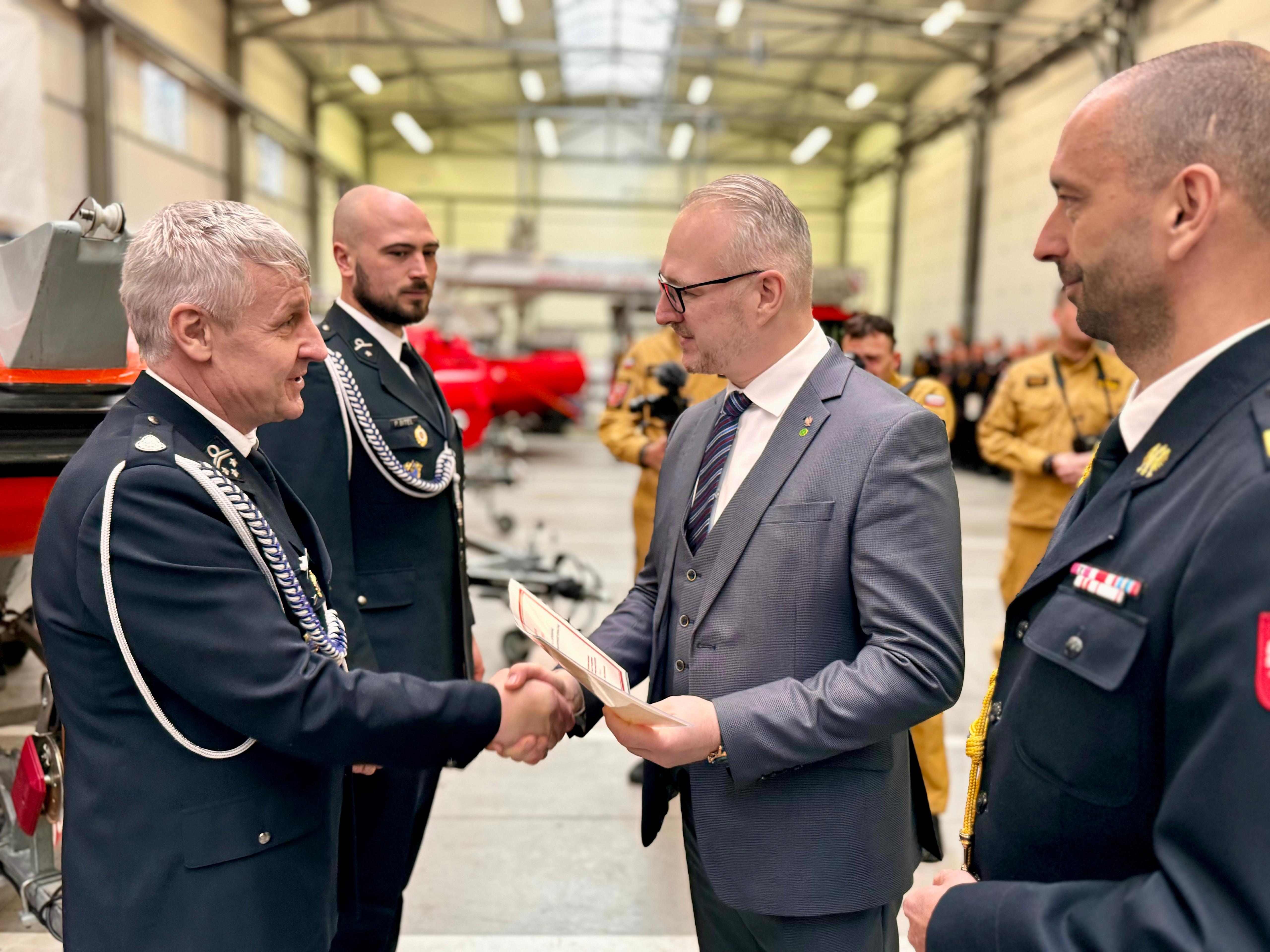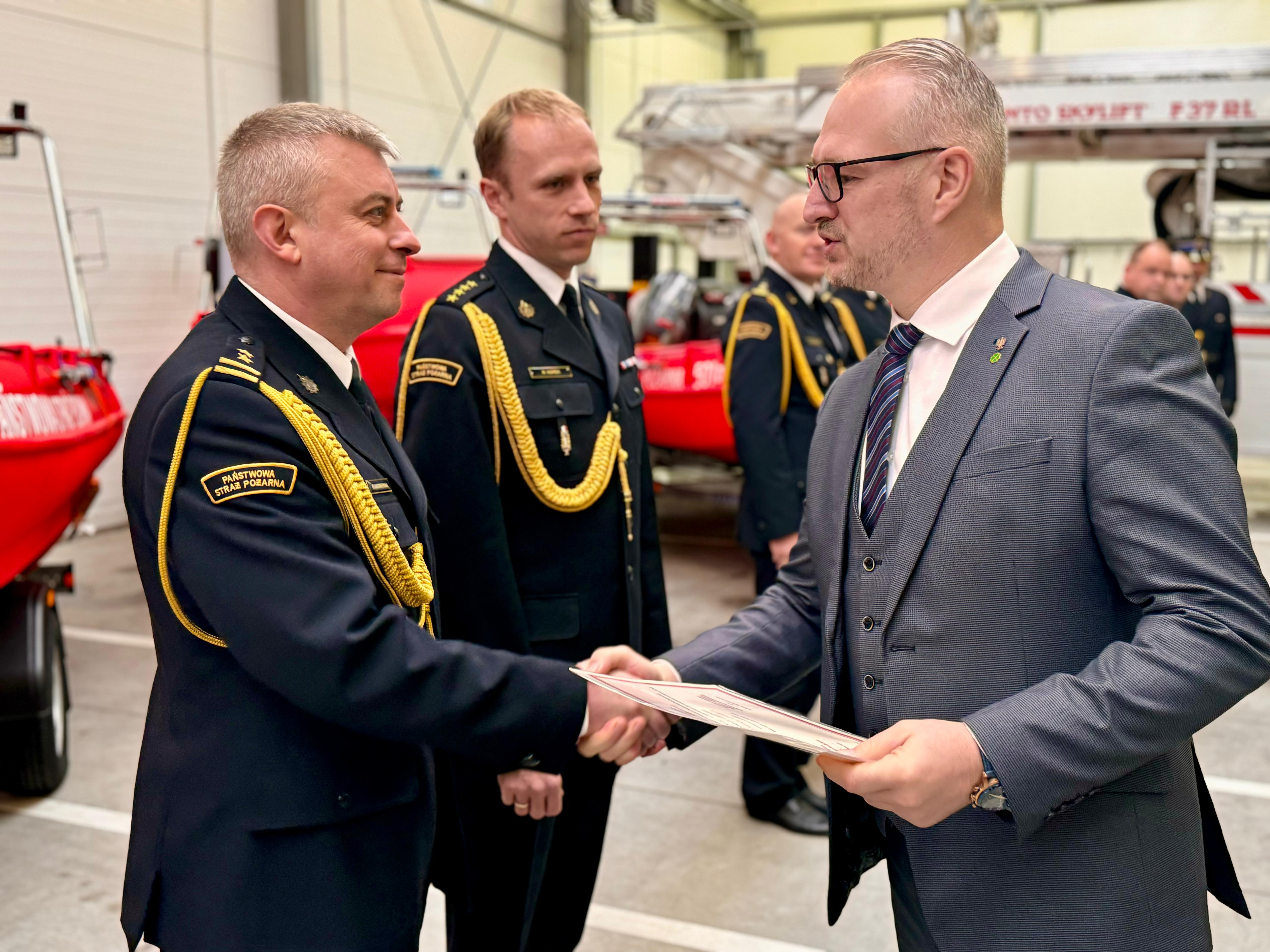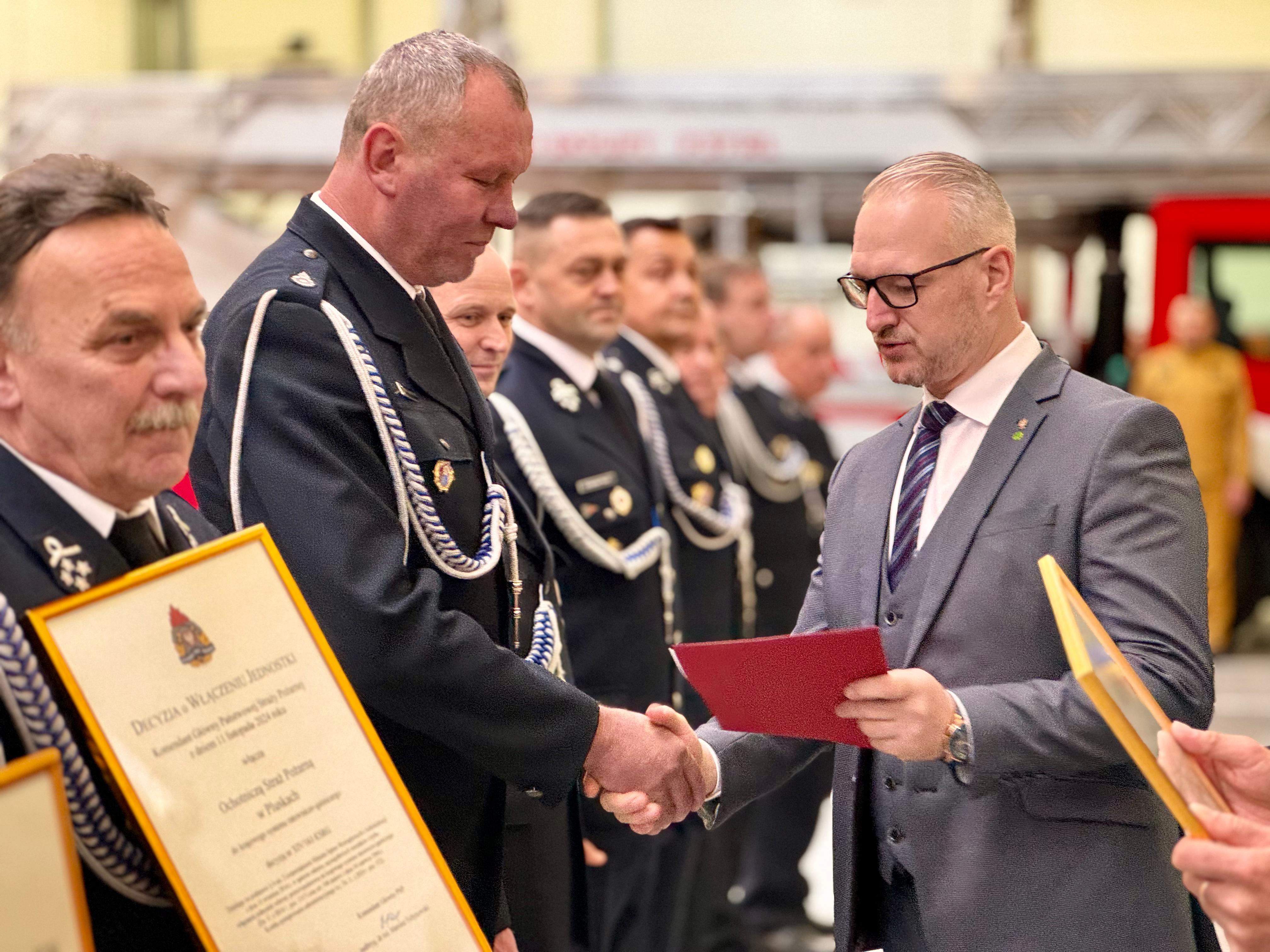 W trakcie uroczystości Wojewoda Radosław Król wraz z Warmińsko-Mazurskim Komendantem Wojewódzkim PSP, nadbryg. Michałem Kamienieckim, wręczyli decyzje o włączeniu ośmiu jednostek OSP do Krajowego Systemu Ratowniczo-Gaśniczego (KSRG).
