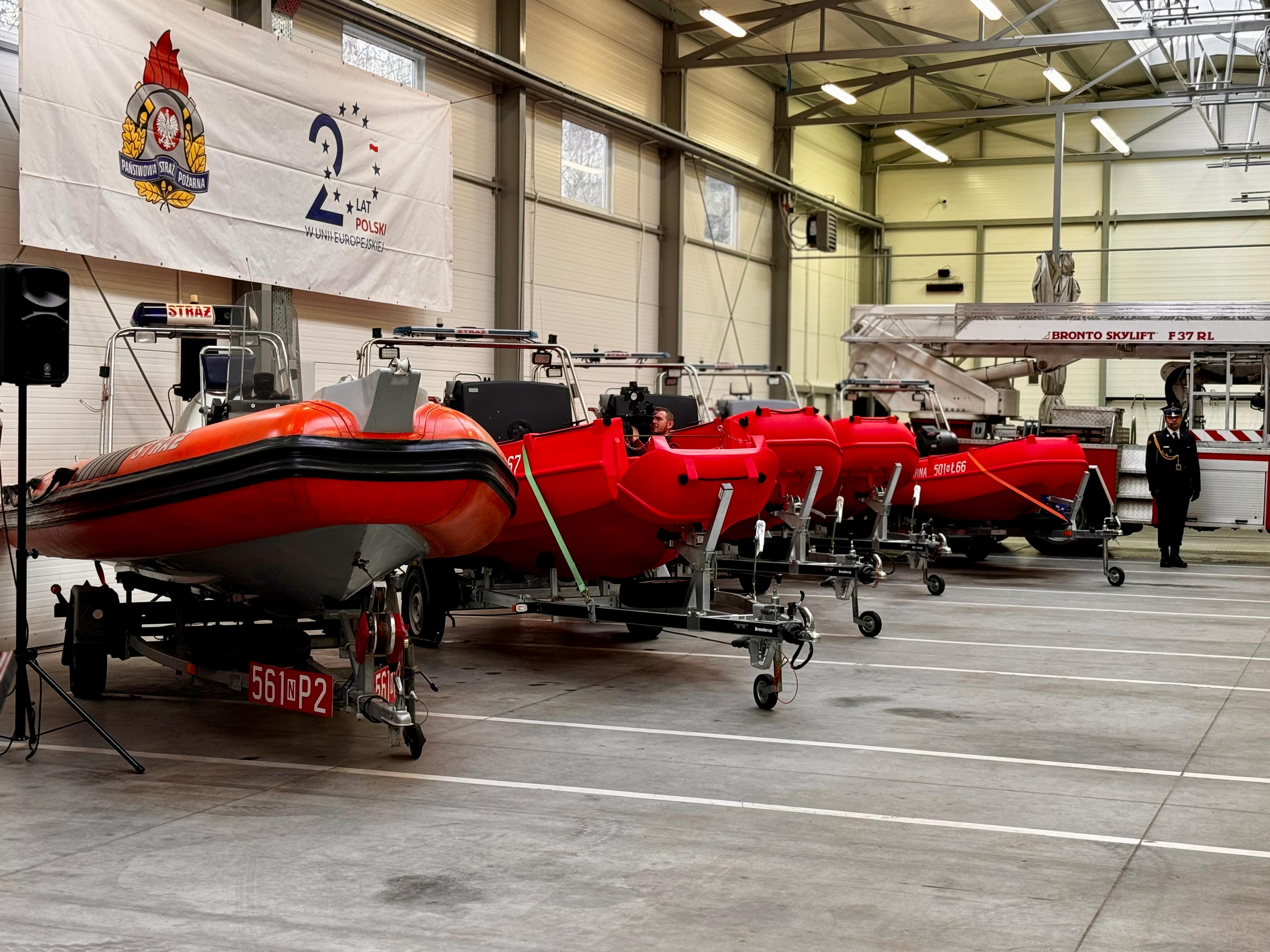 - łodzie ratownicze dla Komend Miejskich i Powiatowych PSP w Elblągu, Nidzicy, Piszu i Węgorzewie,
