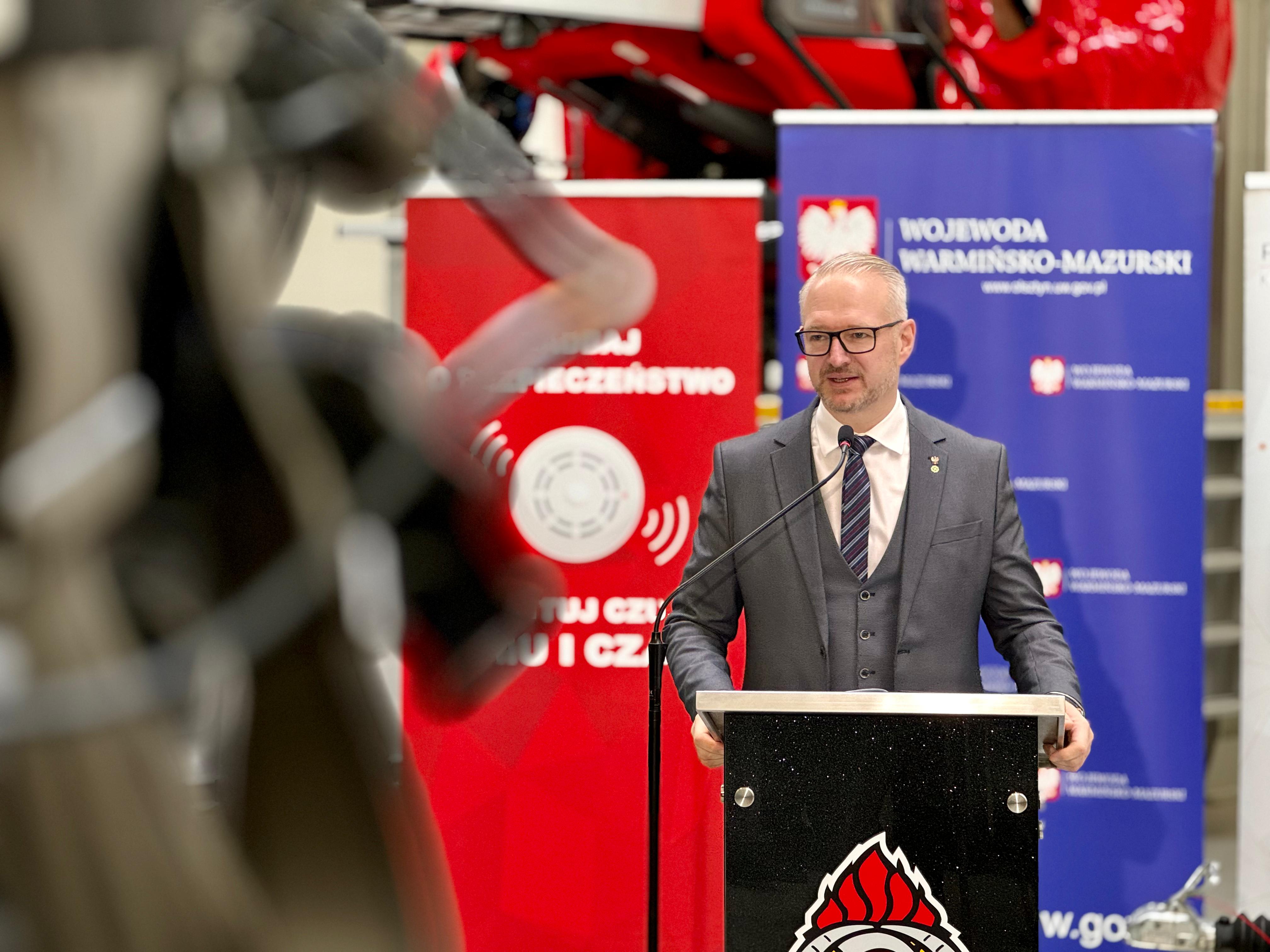 Wojewoda Warmińsko-Mazurski Radosław Król, podkreślając znaczenie wsparcia dla strażaków, powiedział:
