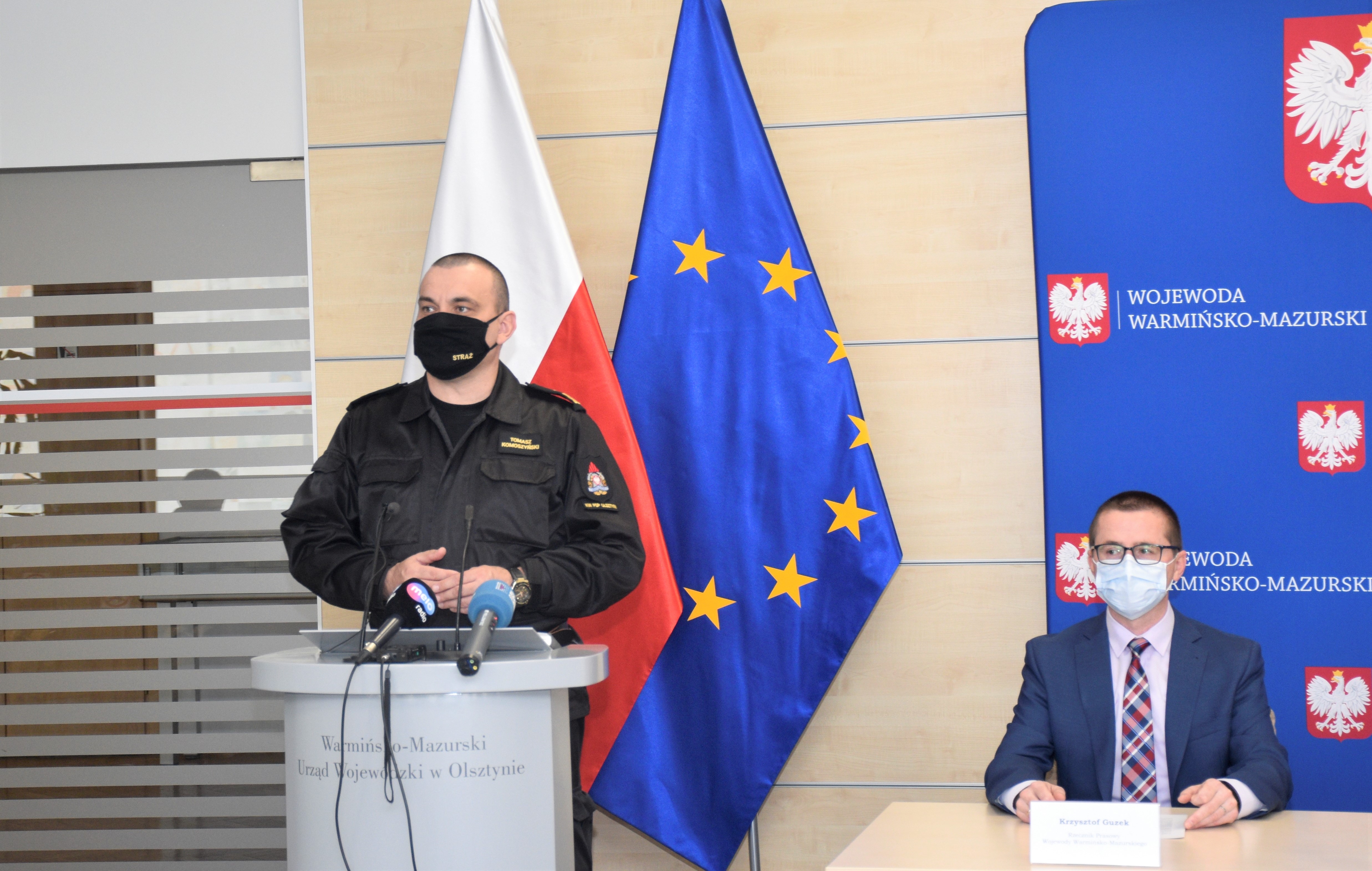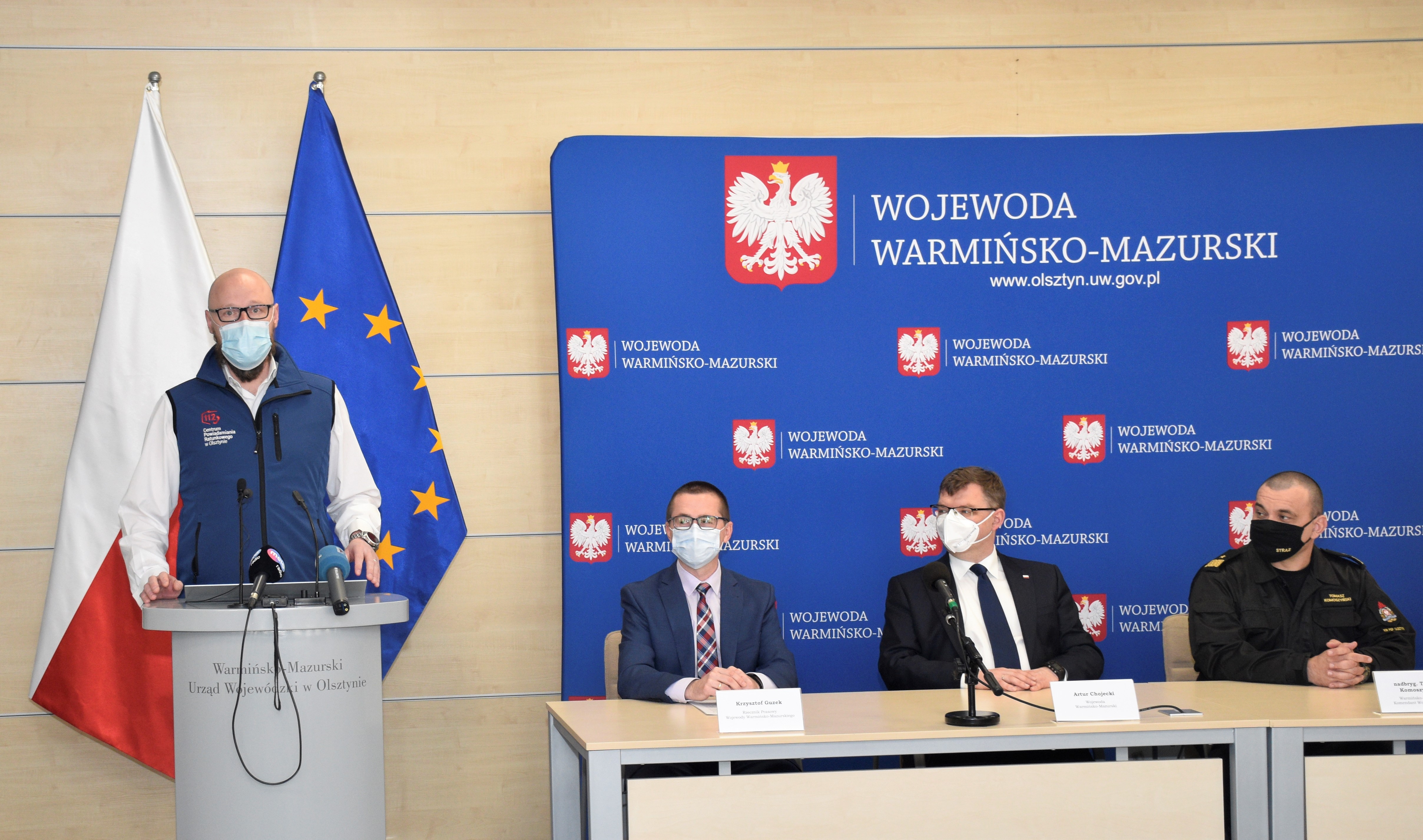 Dziś odbył się briefing prasowy dotyczący przełączenia obsługi strażackiego numeru alarmowego 998 do Centrum Powiadamiania Ratunkowego w Olsztynie, w którym udział wzięli: Artur Chojecki Wojewoda Warmińsko-Mazurski, nadbryg. Tomasz Komoszyński Warmińsko-Mazurski Komendant Wojewódzki Państwowej Straży Pożarnej, Krzysztof Kuriata Dyrektor Wydziału Bezpieczeństwa i Zarządzania Kryzysowego Warmińsko-Mazurskiego Urzędu Wojewódzkiego w Olsztynie, Jacek Wasiek Kierownik Centrum Powiadamiania Ratunkowego w Olsztynie oraz st. kpt. Rafał Melnyk Oficer Prasowy Warmińsko-Mazurskiego Komendanta Wojewódzkiego PSP.