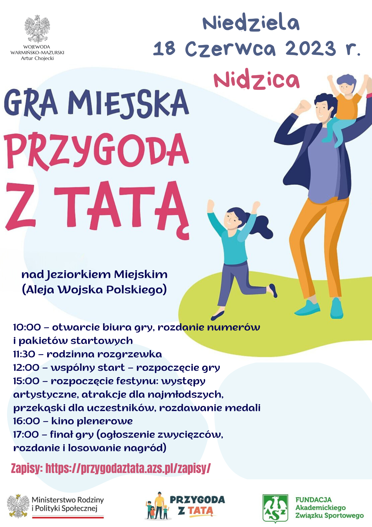 Już dziś możecie zaznaczyć w kalendarzu datę 18 czerwca. Tego dnia, w niedzielę poprzedzającą Dzień Ojca - w Nidzicy odbędzie się gra miejska „Przygoda z Tatą”. Kilka godzin wspólnej zabawy, zagadki, konkurencje umysłowe i sprawnościowe, nowe aktywności, niespodzianki – to wszystko sprawi, że będzie to wyjątkowe wydarzenie dla wszystkich rodzin z dziećmi.