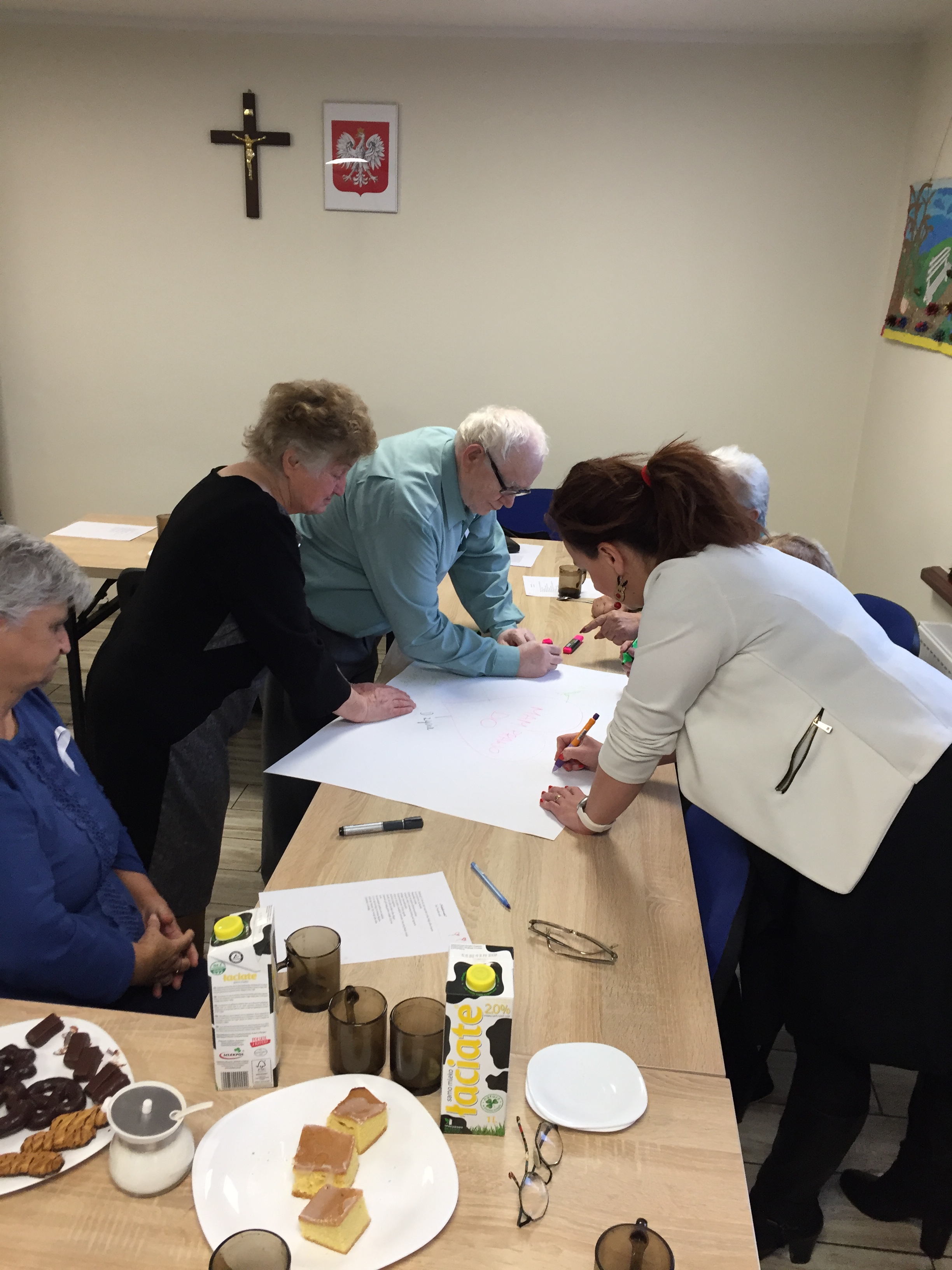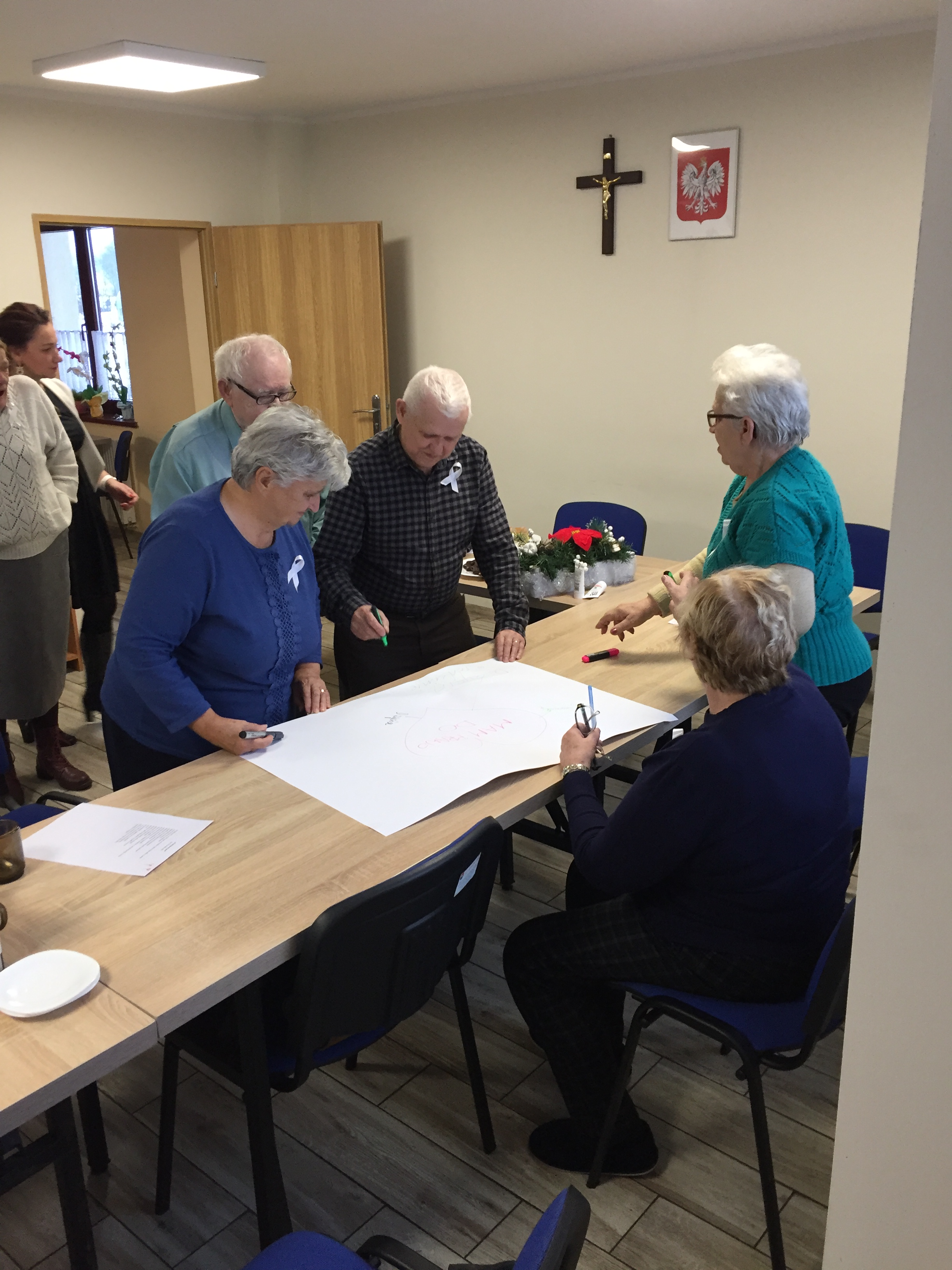 Podczas spotkań poruszane były również tematy dotyczące tolerancji i szacunku we współczesnym świecie, w celu wskazania różnic pomiędzy ludźmi, w tym odmiennych poglądów czy myśli. Dużo radości sprawiło seniorom analizowanie wiersza ks. Jana Twardowskiego pod tytułem „Podziękowanie”, który ukazuje nam naturę człowieka. Interpretacja seniorów była mądra i bardzo czytelna: człowiek ma prawo popełniać błędy, ma wiele wad i niedoskonałości, ale mimo wszystko jest człowiekiem, który zasługuje na akceptację i szacunek, nie należy odtrącać drugiego człowieka.