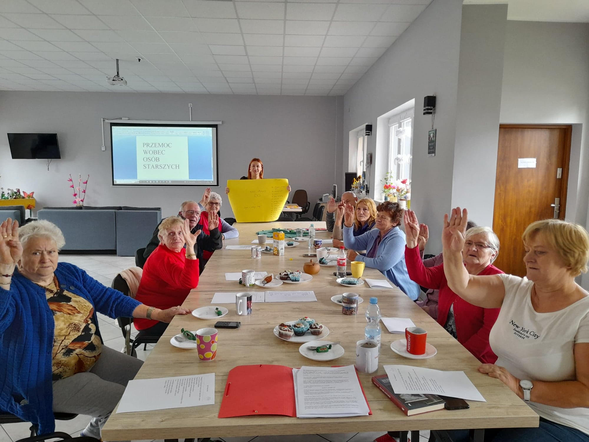 W ramach projektu zostały przeprowadzone spotkania edukacyjne dla seniorów przez pracowników socjalnych Zespołu Pracy Socjalnej Nr 1 w MOPS, realizujących zadania związane z przeciwdziałaniem przemocy w rodzinie. Spotkania odbyły się w 4 Dziennych Domach Pomocy Społecznej prowadzonych przez Ośrodek.