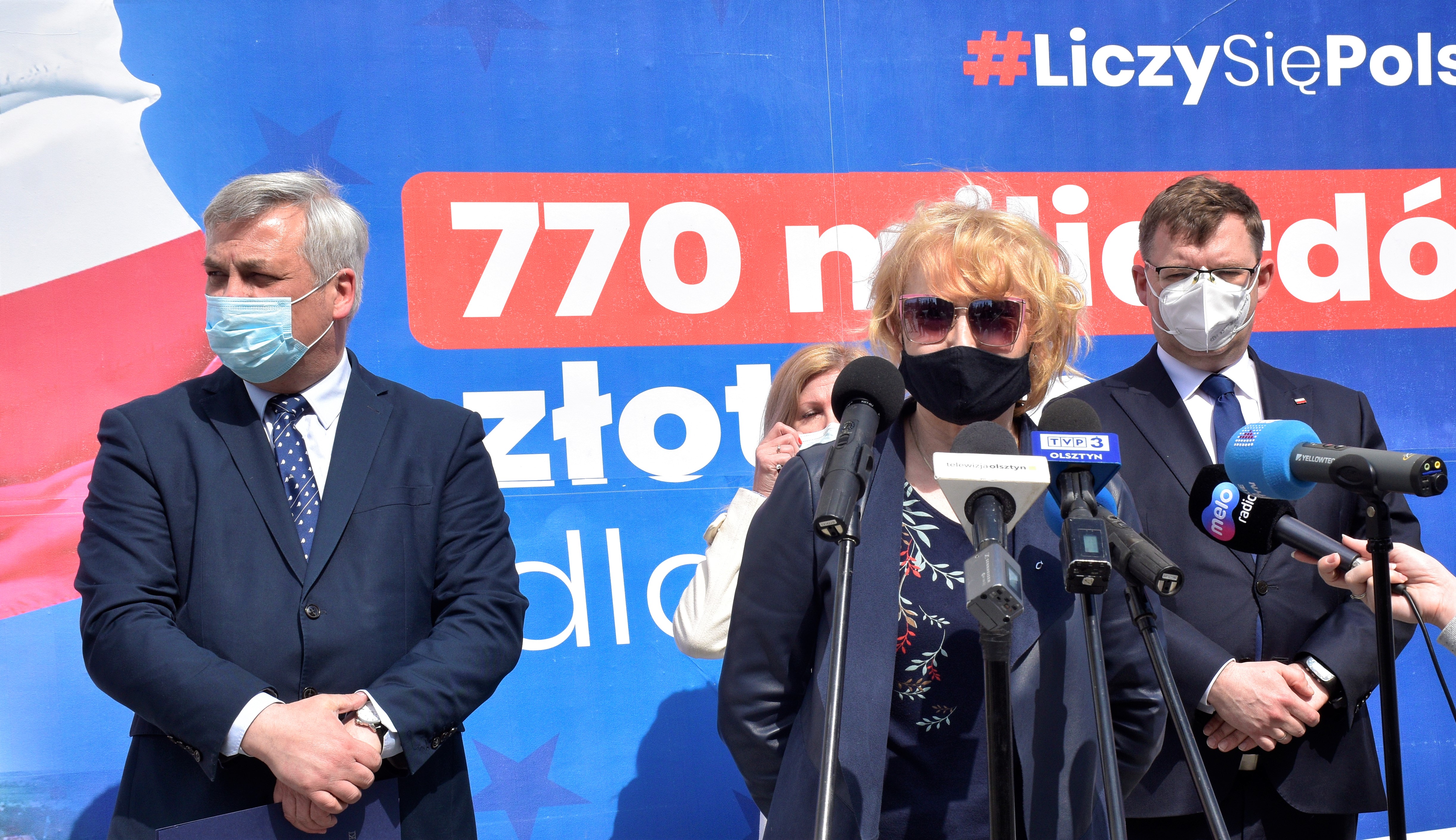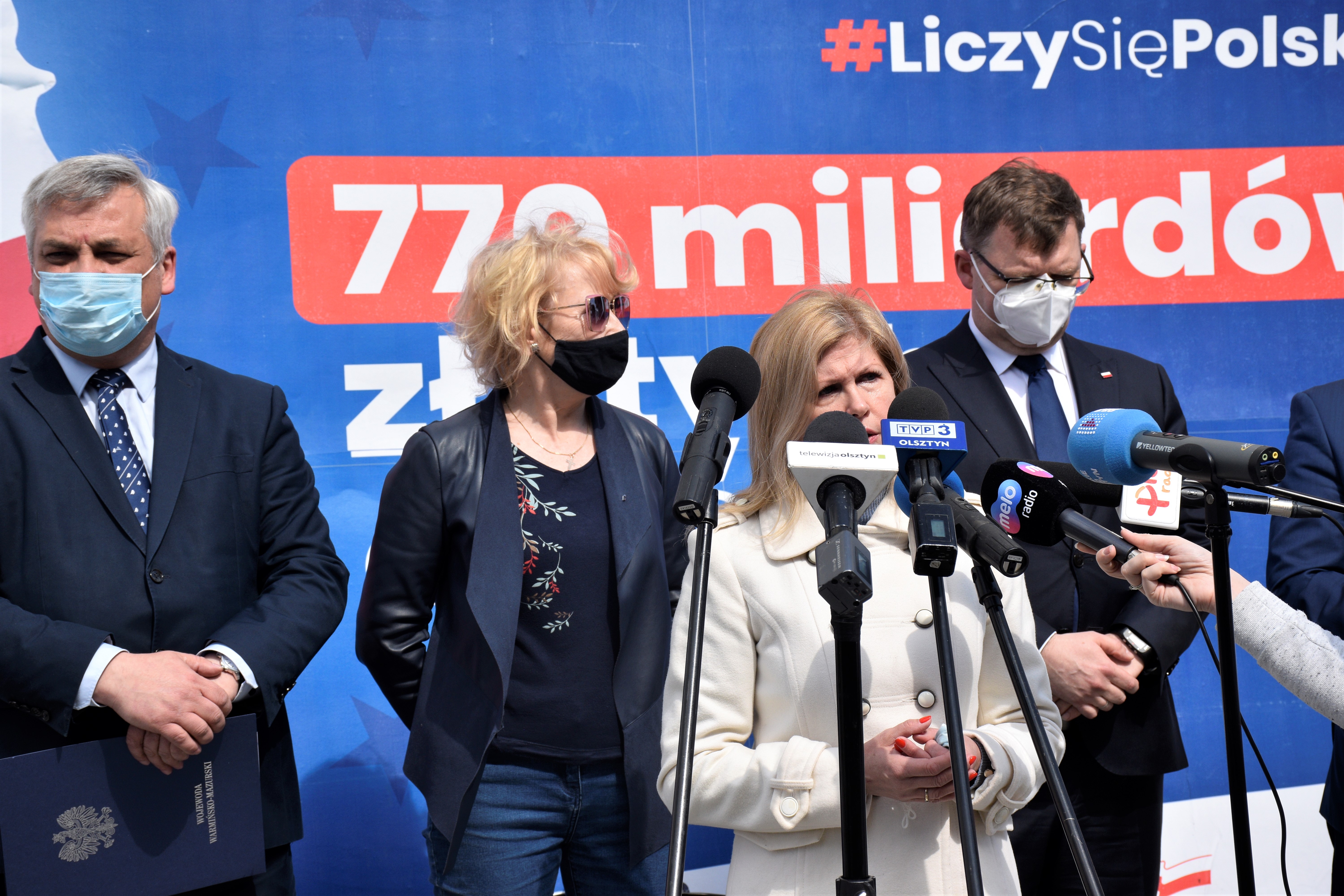 Dziś przed urzędem odbyła się konferencja prasowa dotycząca projektu ustawy o tzw. zasobach własnych UE, pozwalającej na skorzystanie z 770 miliardów złotych środków unijnych, w której udział wzięli: Artur Chojecki Wojewoda Warmińsko-Mazurski, Iwona Arent Poseł na Sejm RP oraz Jerzy Szmit Prezes Zarządu Okręgu Olsztyńskiego Prawo i Sprawiedliwość.