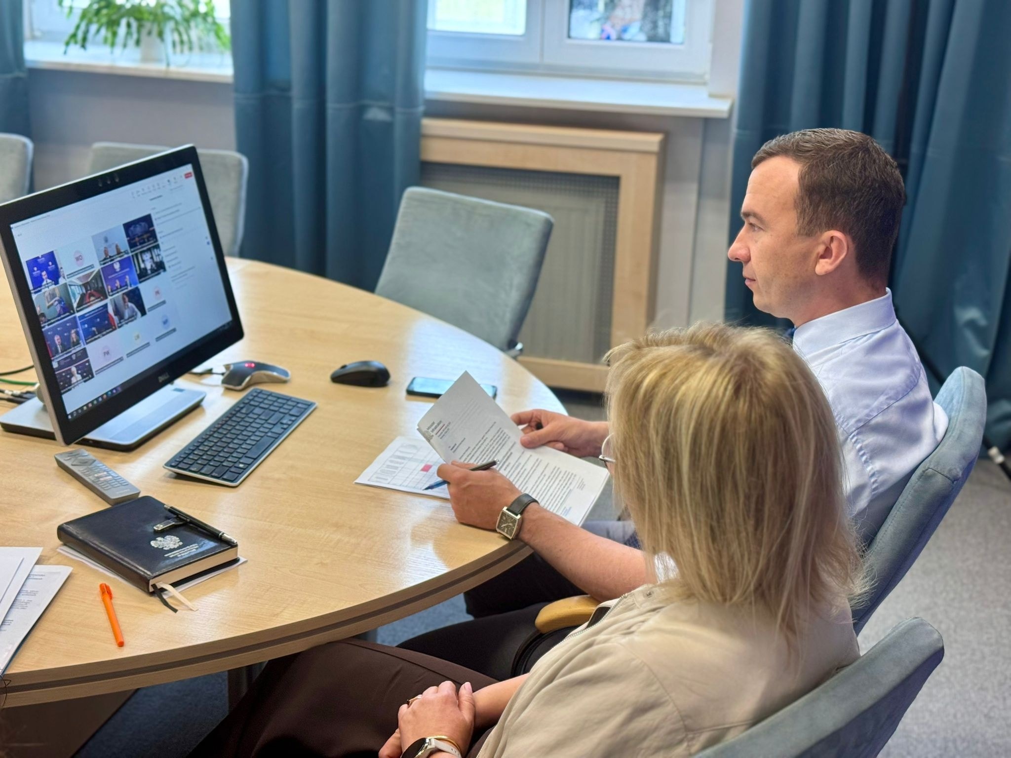 Dziś odbyła się wideokonferencja zorganizowana przez Ministerstwo Infrastruktury, poświęcona omówieniu założeń naboru wniosków w ramach Rządowego Funduszu Rozwoju Dróg - edycja 2026. W spotkaniu uczestniczyli m.in. Wicewojewoda Warmińsko-Mazurski Mateusz Szauer, Dyrektor Wydziału Infrastruktury Beata Faltynowska i Nieruchomości oraz Zastępca Dyrektora Wydziału Infrastruktury i Nieruchomości Izabela Sielicka-Werner.