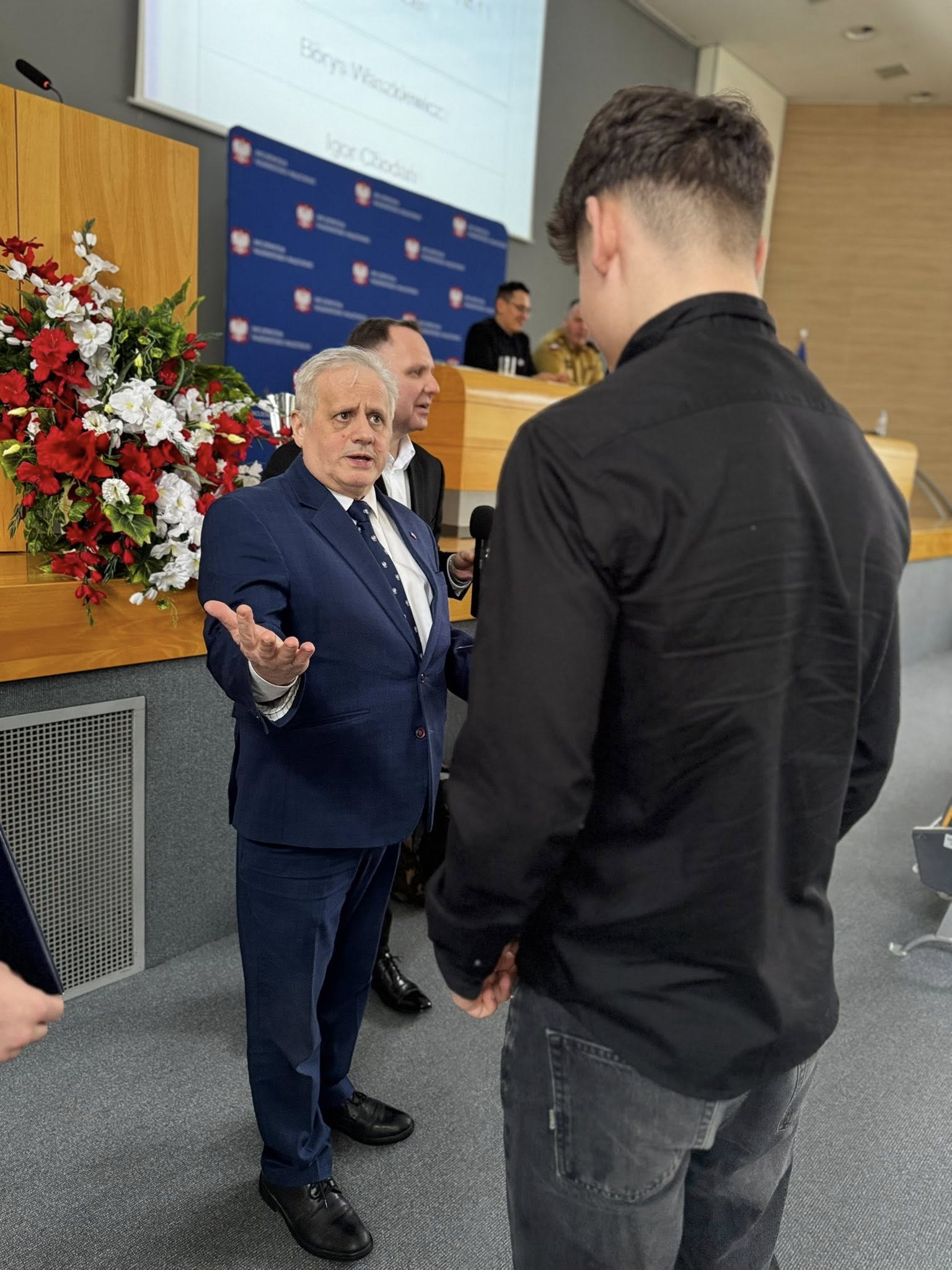Wicewojewoda Zbigniew Szczypiński podziękował nauczycielom i opiekunom, którzy przygotowali uczniów do udziału w konkursie, wspierając rozwój ich wiedzy i umiejętności w obszarze bezpieczeństwa powszechnego.