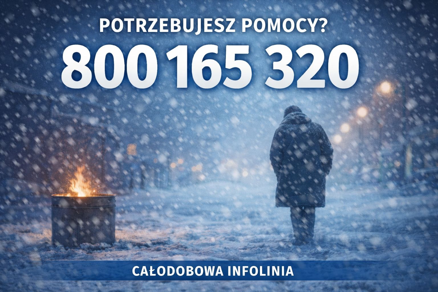 Silny mróz to realne zagrożenie. Jeśli widzimy osobę śpiącą na ulicy, w pustostanie, na klatce schodowej czy w innym miejscu narażonym na wychłodzenie — reagujmy. Zgłoszenie sytuacji i przekazanie informacji może pozwolić dotrzeć z pomocą na czas.