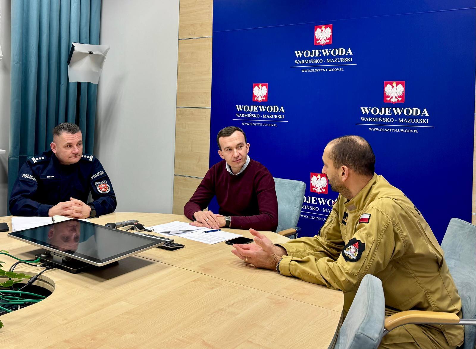 W związku z trudnymi warunkami atmosferycznymi Wicewojewoda Warmińsko-Mazurski Mateusz Szauer wraz z Komendantem Wojewódzkim Państwowej Straży Pożarnej w Olsztynie oraz Komendantem Wojewódzkim Policji w Olsztynie wziął udział w wideokonferencji zorganizowanej przez Ministerstwo Spraw Wewnętrznych i Administracji.