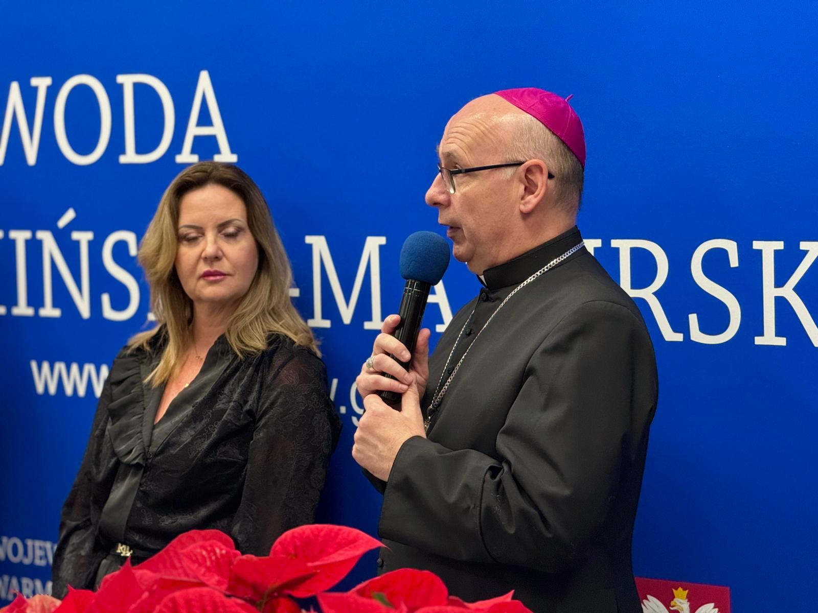 Po okolicznościowych wystąpieniach ksiądz biskup pomocniczy Archidiecezji Warmińskiej ks. bp dr Janusz Ostrowski poprowadził wspólną modlitwę, poświęcił opłatki oraz udzielił błogosławieństwa. Następnie uczestnicy spotkania podzielili się opłatkiem, składając sobie świąteczne życzenia.
