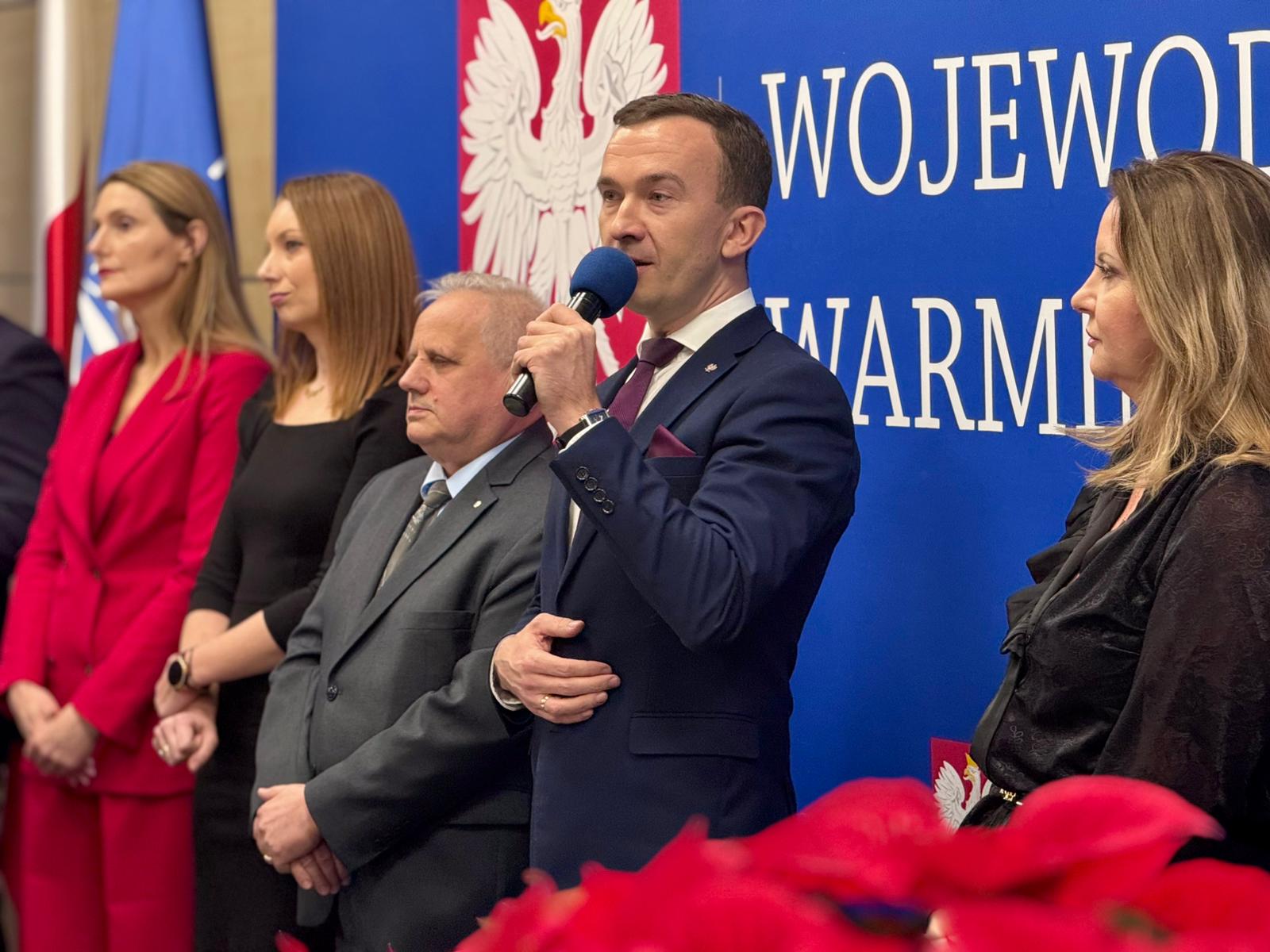 W Warmińsko-Mazurskim Urzędzie Wojewódzkim odbyło się tradycyjne spotkanie wigilijne z udziałem wojewody, Radosława Króla, wicewojewodów, Mateusza Szauera i Zbigniewa Szczypińskiego, oraz Dyrektora Generalnego Warmińsko-Mazurskiego Urzędu Wojewódzkiego w Olsztynie, Moniki Choroszewskiej-Pleńkowskiej.